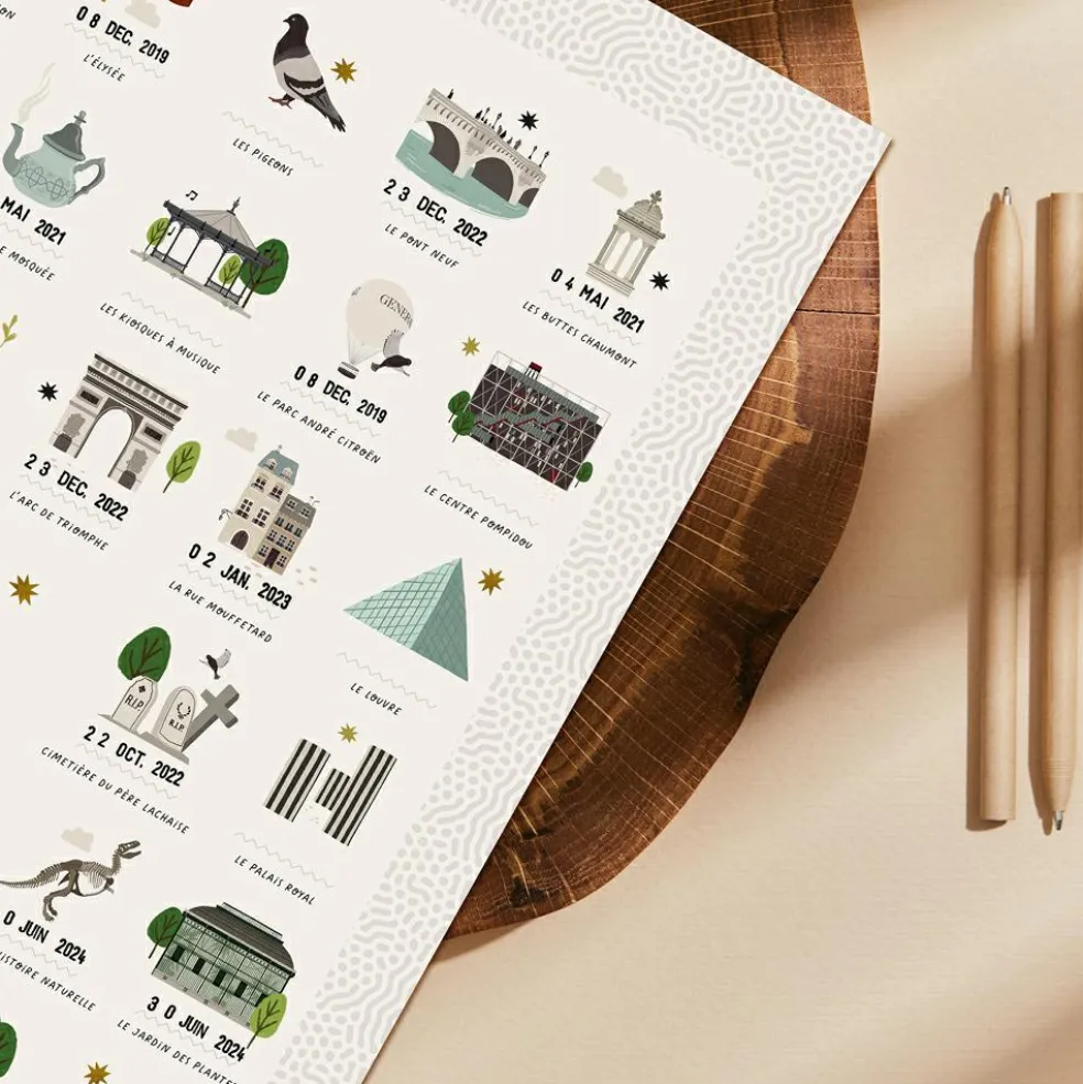 Cette affiche réunit les monuments emblématiques de Paris. Le Museum d’histoire naturelle, la Tour Eiffel, l’Arc de Triomphe… Comme un guide touristique pour accompagner les envies de découverte des enfants.