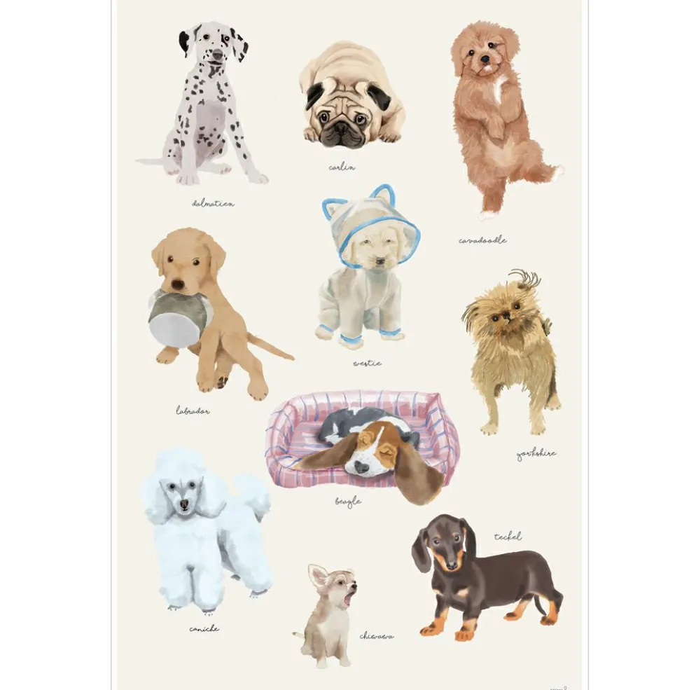 – Une affiche remplie de petits chiens espiègles, pour apprendre à les reconnaître et les nommer.