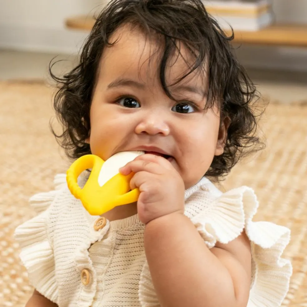 L’anneau de dentition banane est parfaitement adapté aux petites mains grâce aux poignées souples incorporées. Bébé pourra mordre pour soulager les douleurs liées à la poussée dentaire.