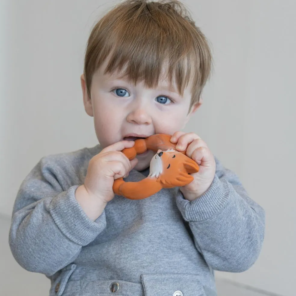 L’ anneau de dentition Renard de la marque Natrüba soulagera les gencives douloureuses de votre bébé pendant les poussées dentaires. En caoutchouc naturel issu de l’hévéa, et grâce à ses différentes textures, ce mignon renard stimulera les sens de votre tout-petit.