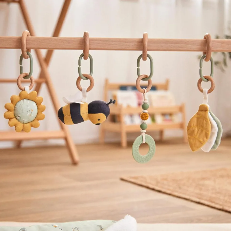 – Sur le support, vous pouvez accrocher différents jouets et suspensions.