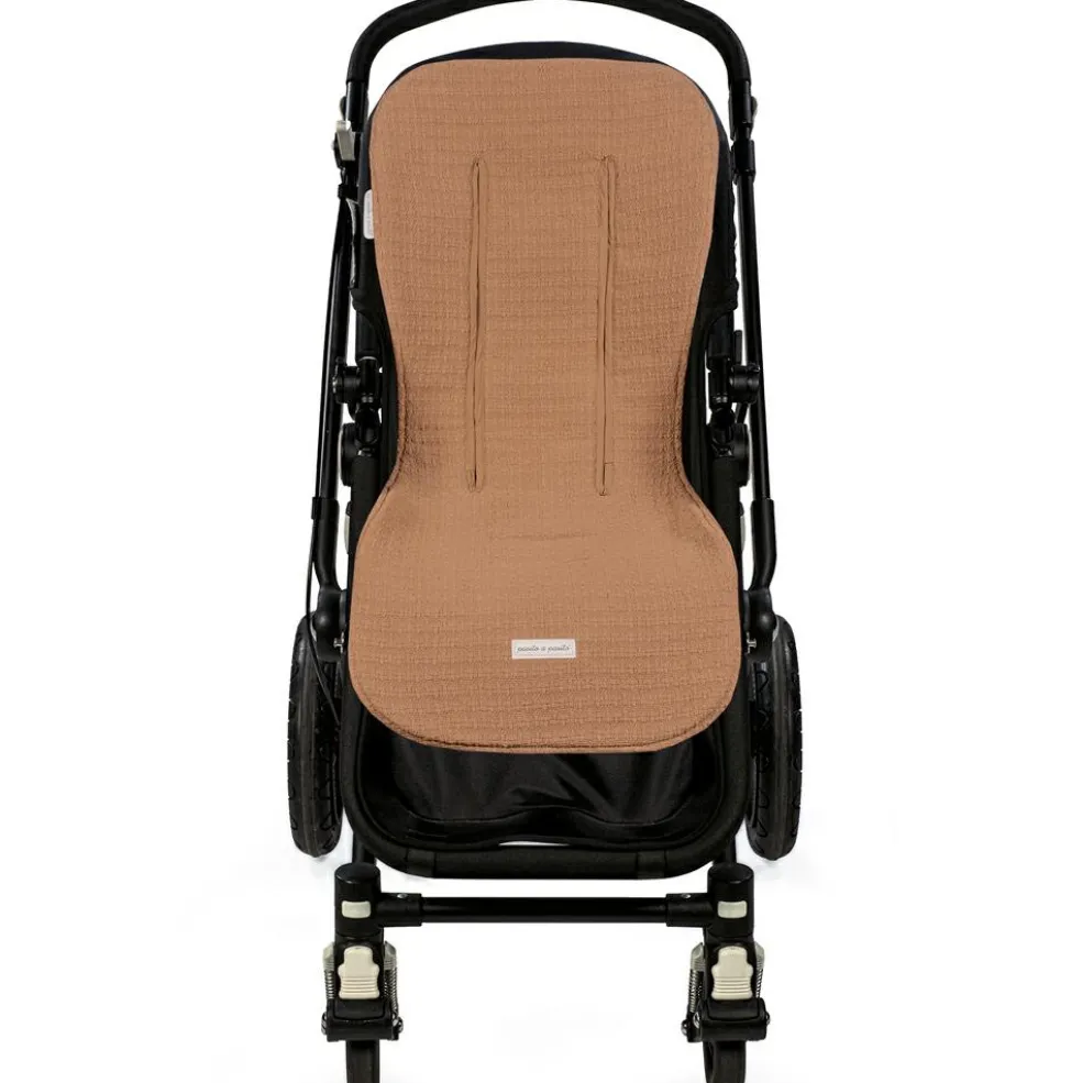 – L’assisse poussette Icon Caramel de Pasito a pasito en tissu gaze 100% coton est la housse idéale qui s’adapte à la plupart des poussettes et offre un plus grand confort à votre enfant lors de ses promenades par temps chaud.