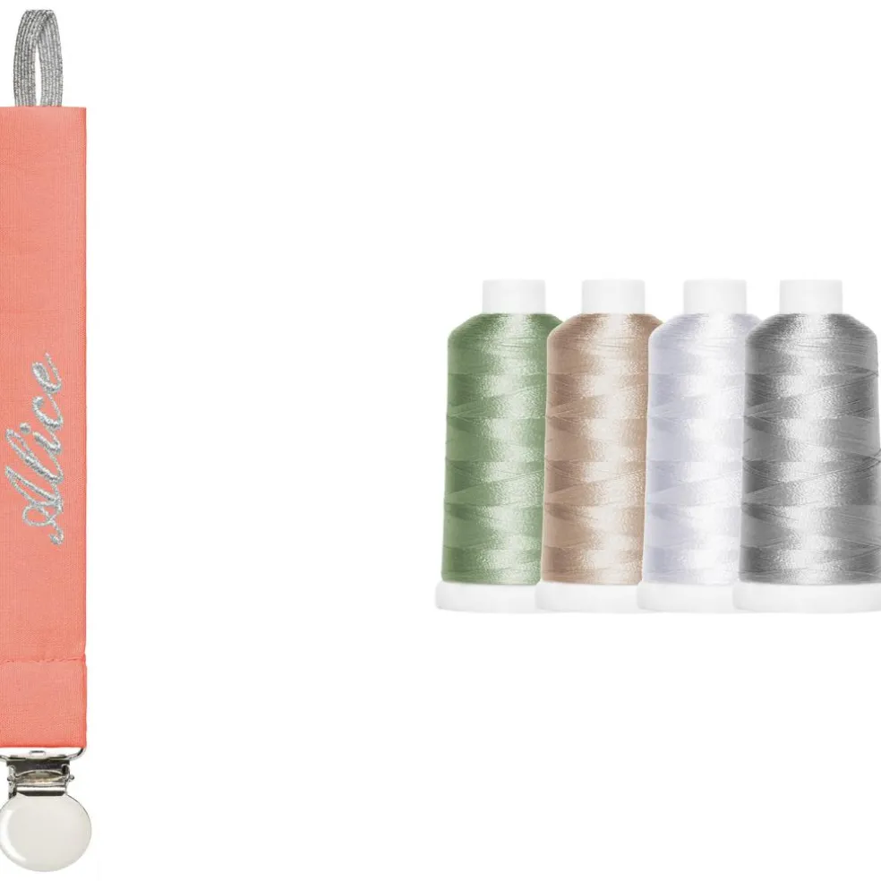 – La sucette s’accroche grâce au ruban de l’attache sucette.