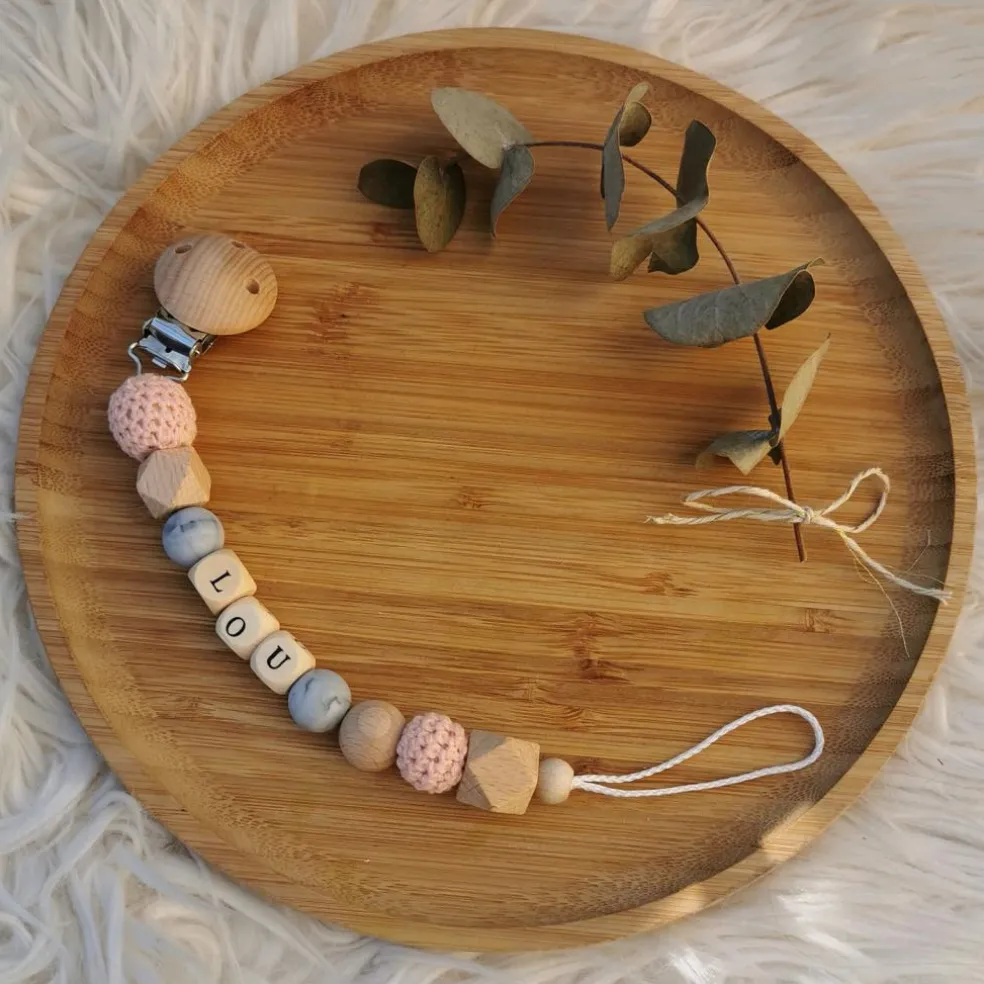 L’attache sucette en bois marbre et rose de la marque Tata Lucette évitera à bébé de perdre sa sucette, pour qu’elle soit toujours là pour lui apporter du réconfort. Réalisée avec des matériaux naturels sains pour bébé, elle stimulera aussi son toucher grâce aux différentes matières. En plus d’être pratique, cet accessoire peut être personnalisé pour le rendre unique.