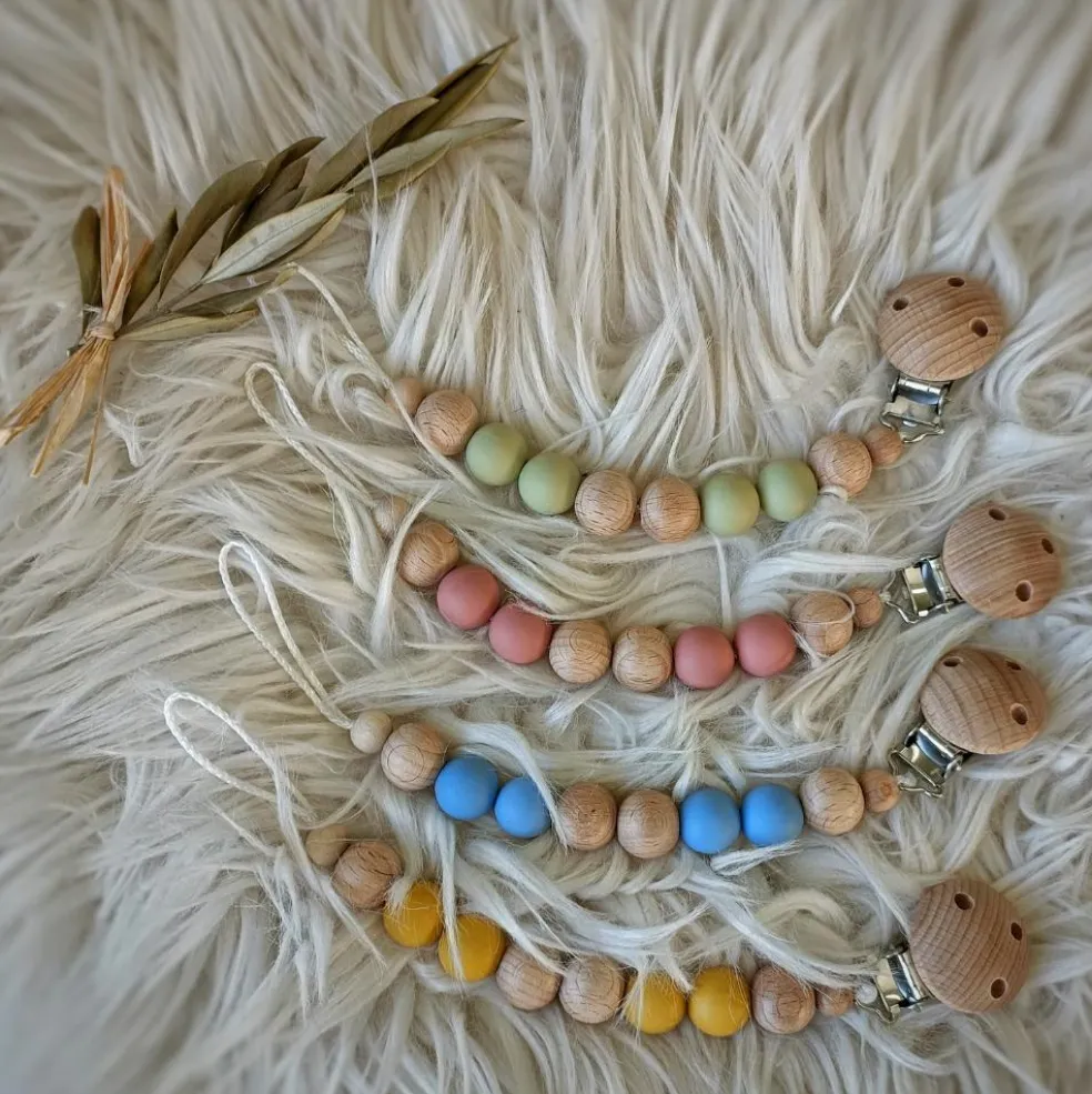 – Perles en fil de coton et silicone alimentaire.