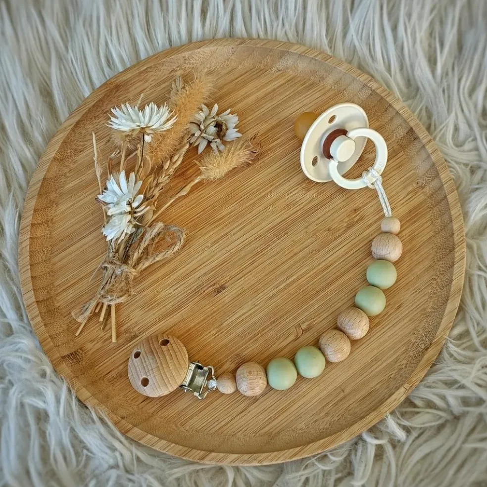 – Perles en fil de coton et silicone alimentaire.