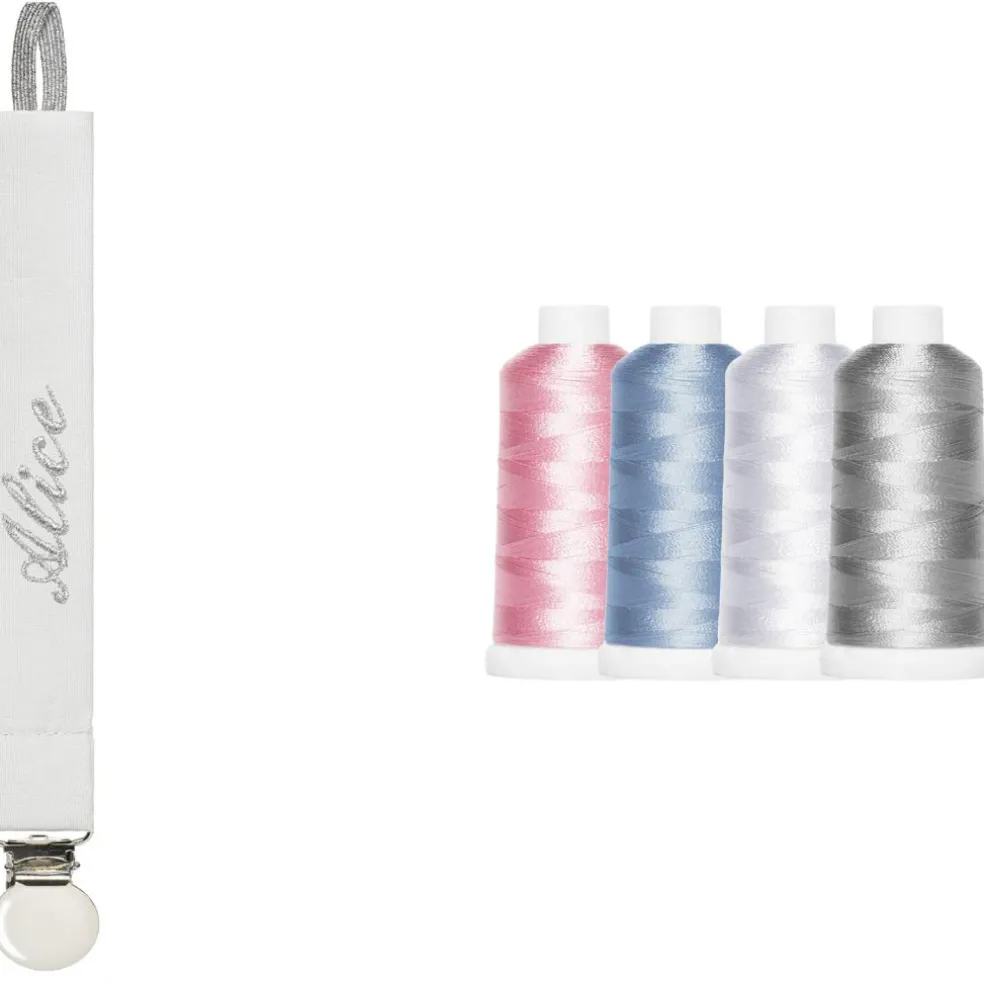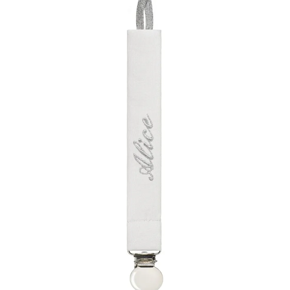 – La sucette s’accroche grâce au ruban de l’attache sucette.