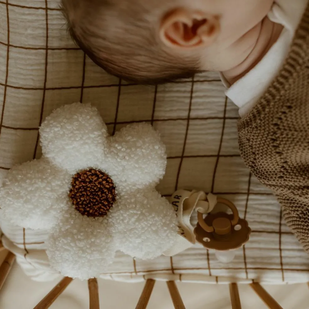 Pensée comme une véritable petite suspension décorative, cette fleur en sherpa fait pétiller les premiers mois de bébé. Son toucher tout doux réconforte, son look fait fondre.