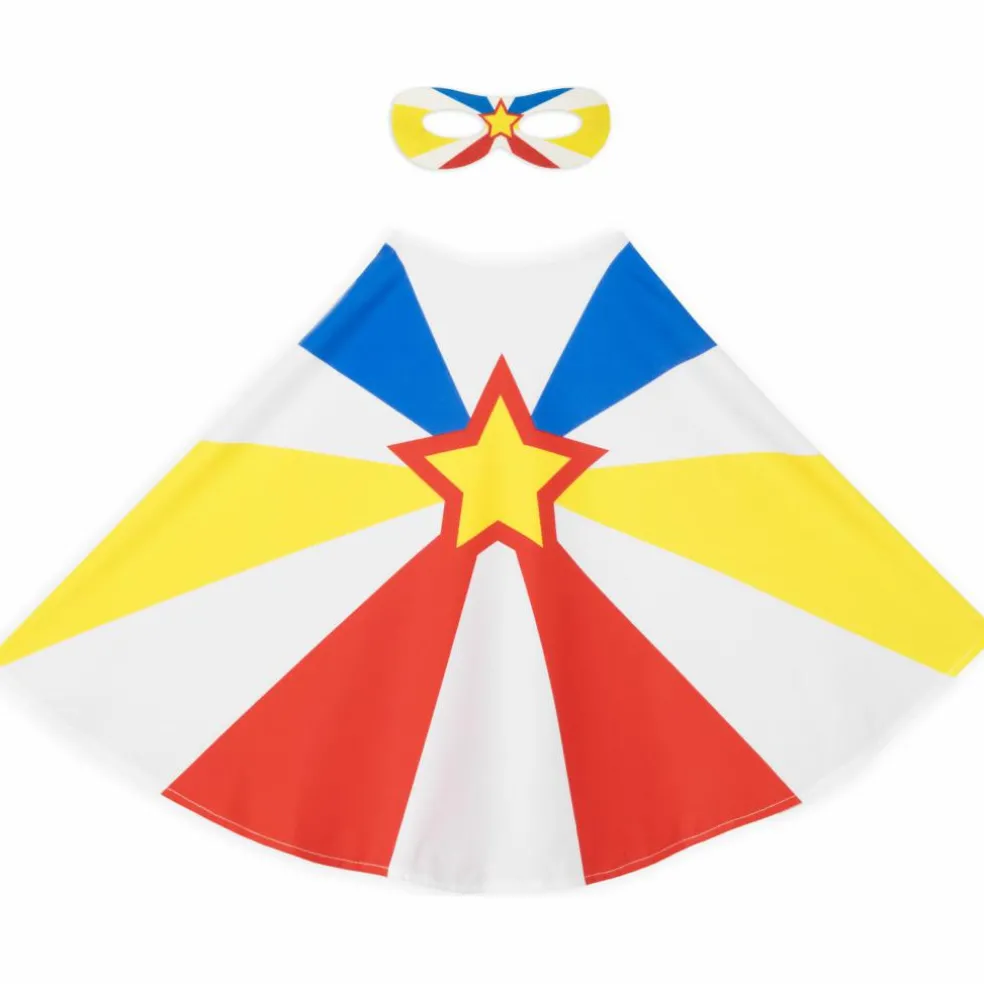 Avec ce set complet, vos enfants dès 2 ans deviennent de véritables justiciers prêts à sauver le monde. La cape rouge, dynamisée par des touches de bleu, vert et blanc, attire tous les regards, tandis que le masque en coton doux garantit confort et style pour des missions héroïques réussies. Léger, pratique et facile à enfiler, ce set stimule l’imaginaire et accompagne les petits dans leurs jeux, leurs fêtes et leurs aventures du quotidien.