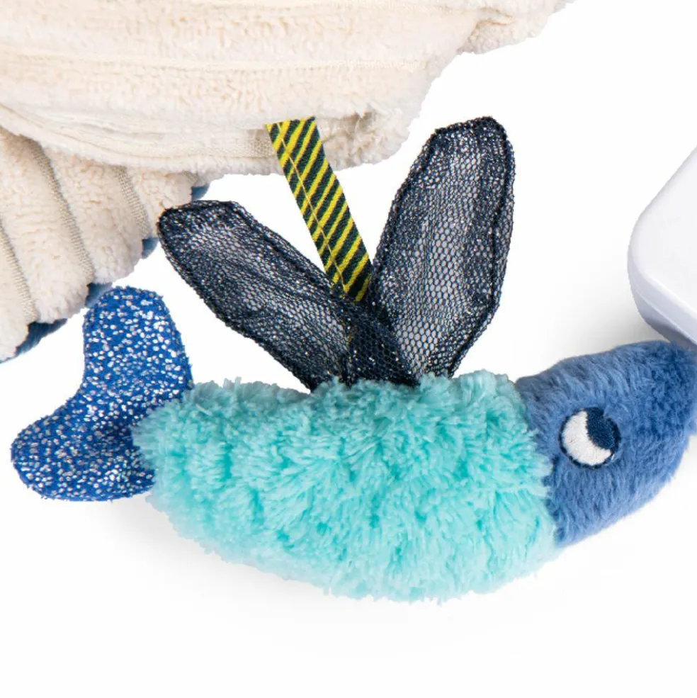 Cette baleine musicale est dotée d’une accroche universelle. Au son de sa douce mélodie, bébé s’endormira paisiblement et à son réveil il pourra jouer avec le miroir sous la nageoire et redécouvrir les diverses textures de ce tendre cétacé.