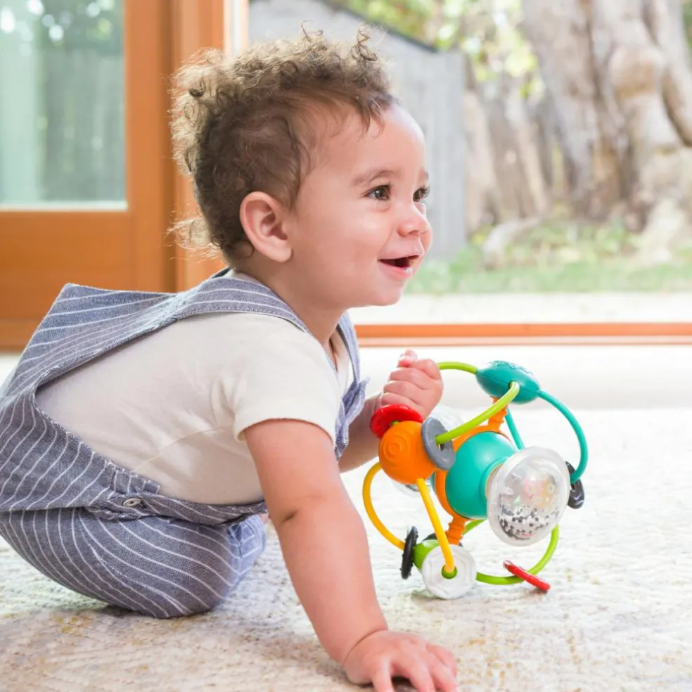 – Les petites billes de couleurs font un joli bruit, attirent le regard et stimulent bébé.