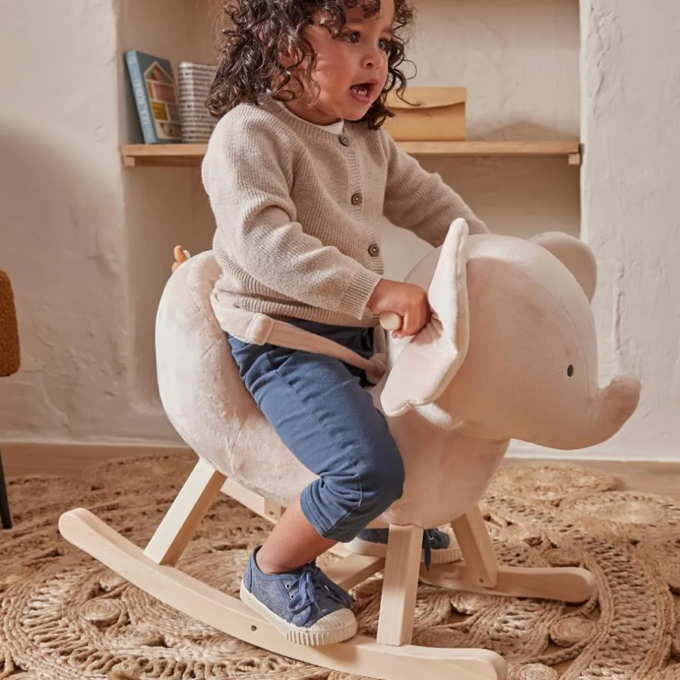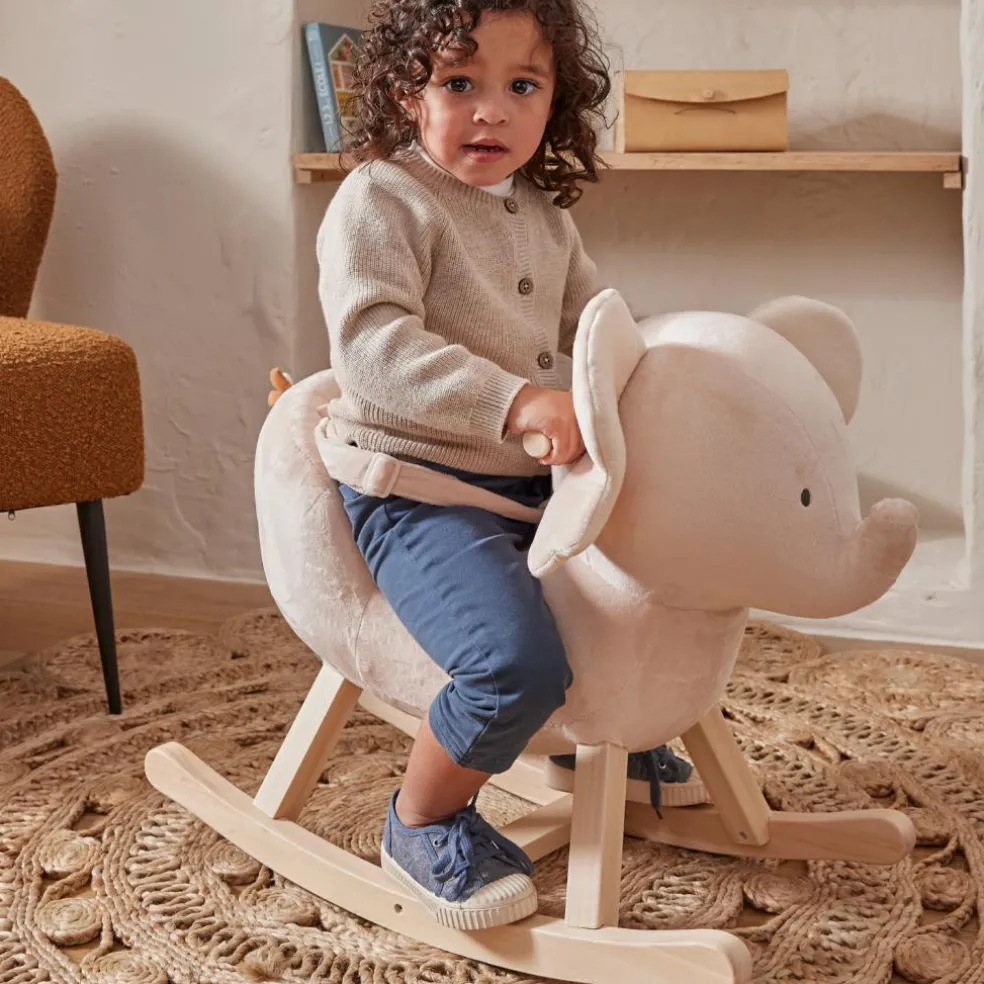 – L’éléphant Bali, avec son regard bienveillant et ses oreilles généreuses, est conçue pour offrir à votre tout-petit une expérience sécurisée, confortable et pleine d’aventures.