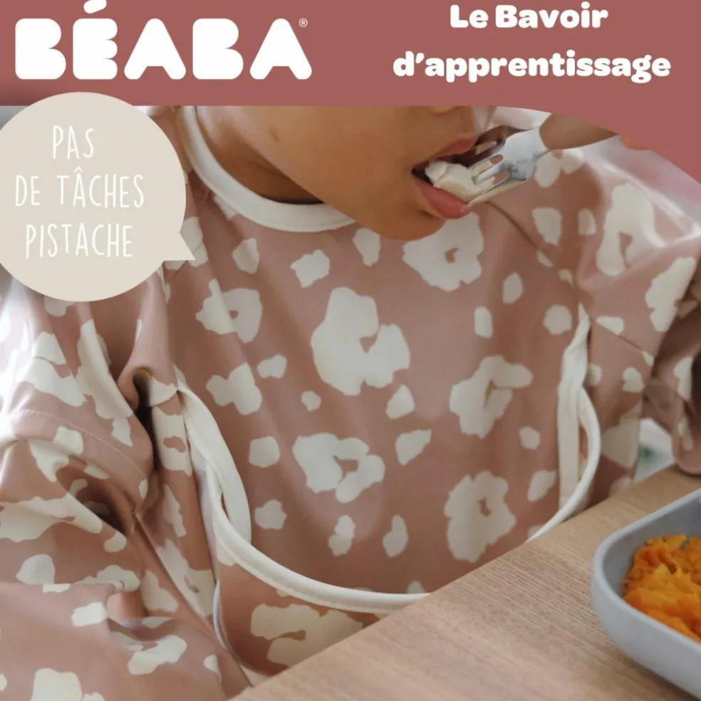 Facilitez les repas (et le nettoyage !) avec le bavoir à manches évolutif Savannah Bloom de Béaba.