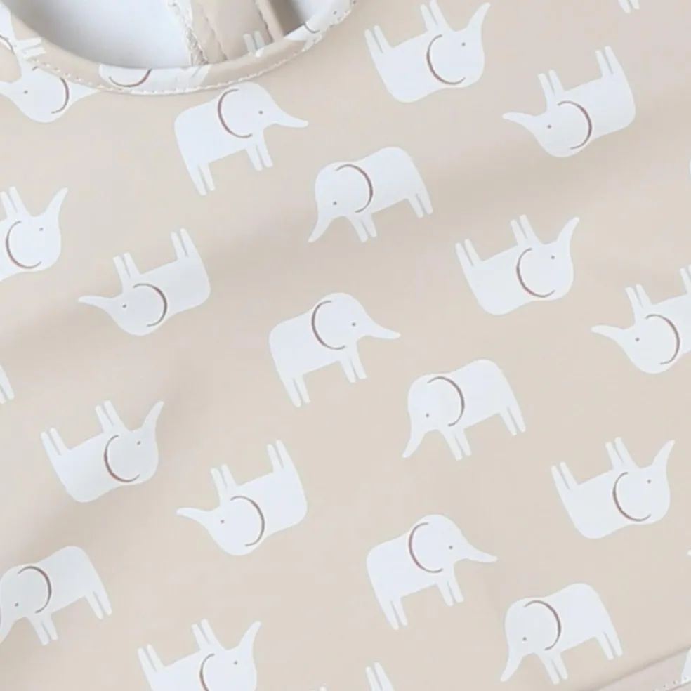 – Conçu en toile cirée déperlante, ce tablier à motif éléphants assure une protection maximale lors des repas et/ou des séances de peinture.
