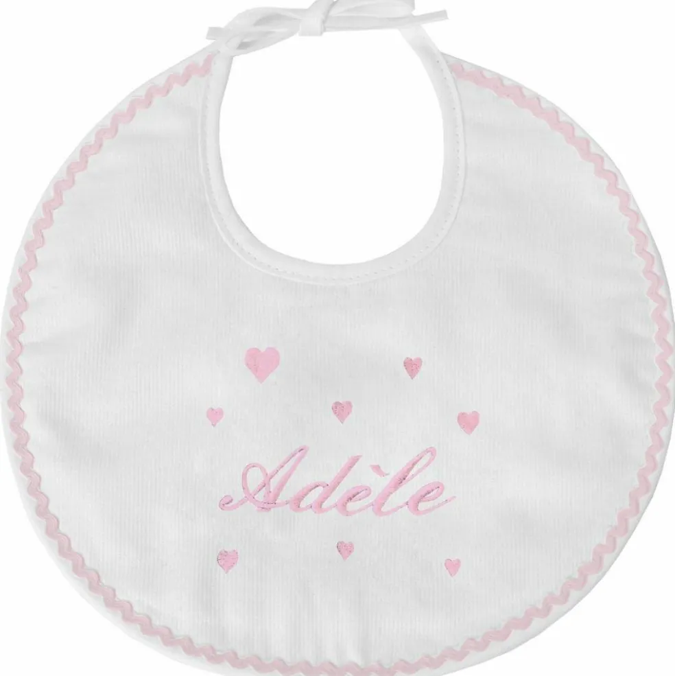 – Le prénom est brodé en rose assorti au croquet avec des coeurs.