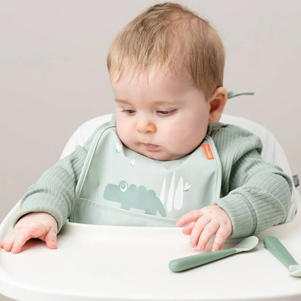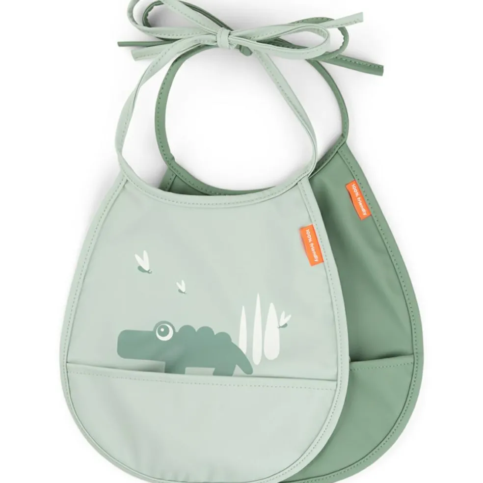 – 2 petits bavoirs dans de ravissantes tonalités vertes.