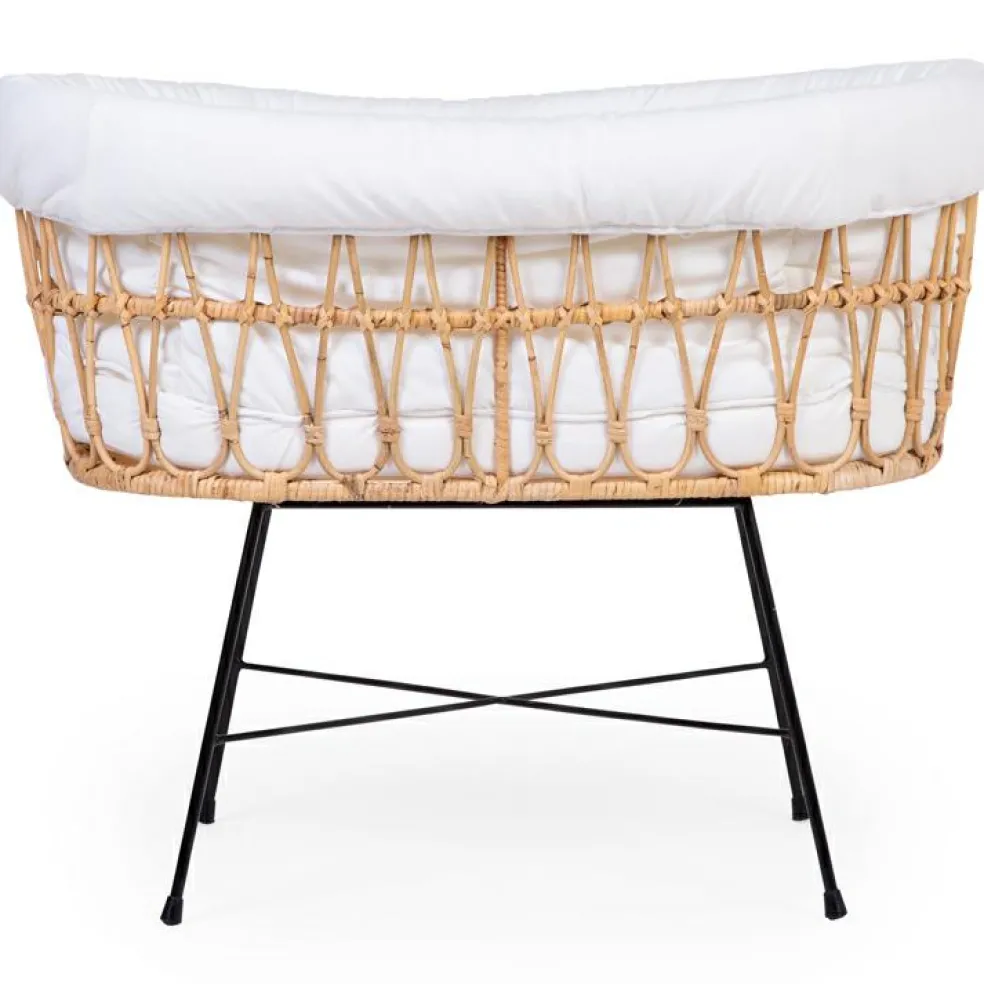 Ce magnifique berceau, mesurant 70 x 51 x 90 cm, est conçu pour offrir un espace chaleureux et sécurisé à votre nouveau-né jusqu’à l’âge de 6 mois. Avec sa structure en rotin naturel et son socle en métal stable, il allie esthétique et praticité pour s’intégrer parfaitement à votre décoration intérieure.