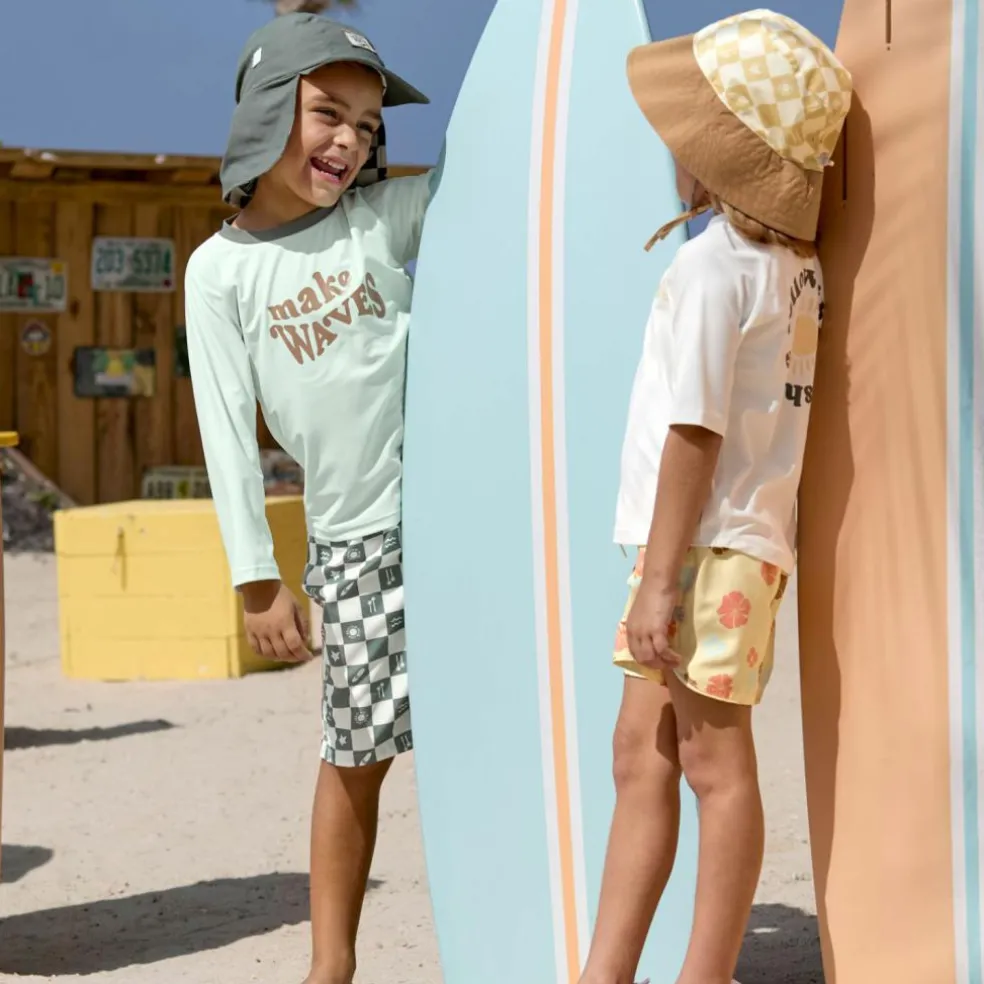 Avis aux petits surfeurs ! Le bob protège la tête sensible des petits grâce à un indice de protection UV 80 et garantit ainsi le plaisir de la baignade sans souci.