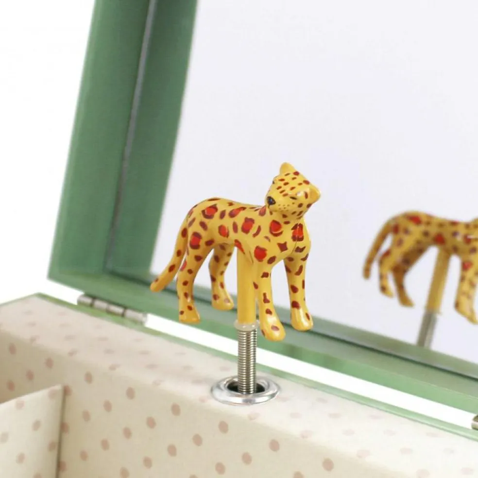 La boîte à bijoux musicale Savane de la marque Trousselier permet aux petits de ranger leurs plus précieux trésors. Une douce musique accompagne l’ouverture de la boîte pour un moment de poésie.