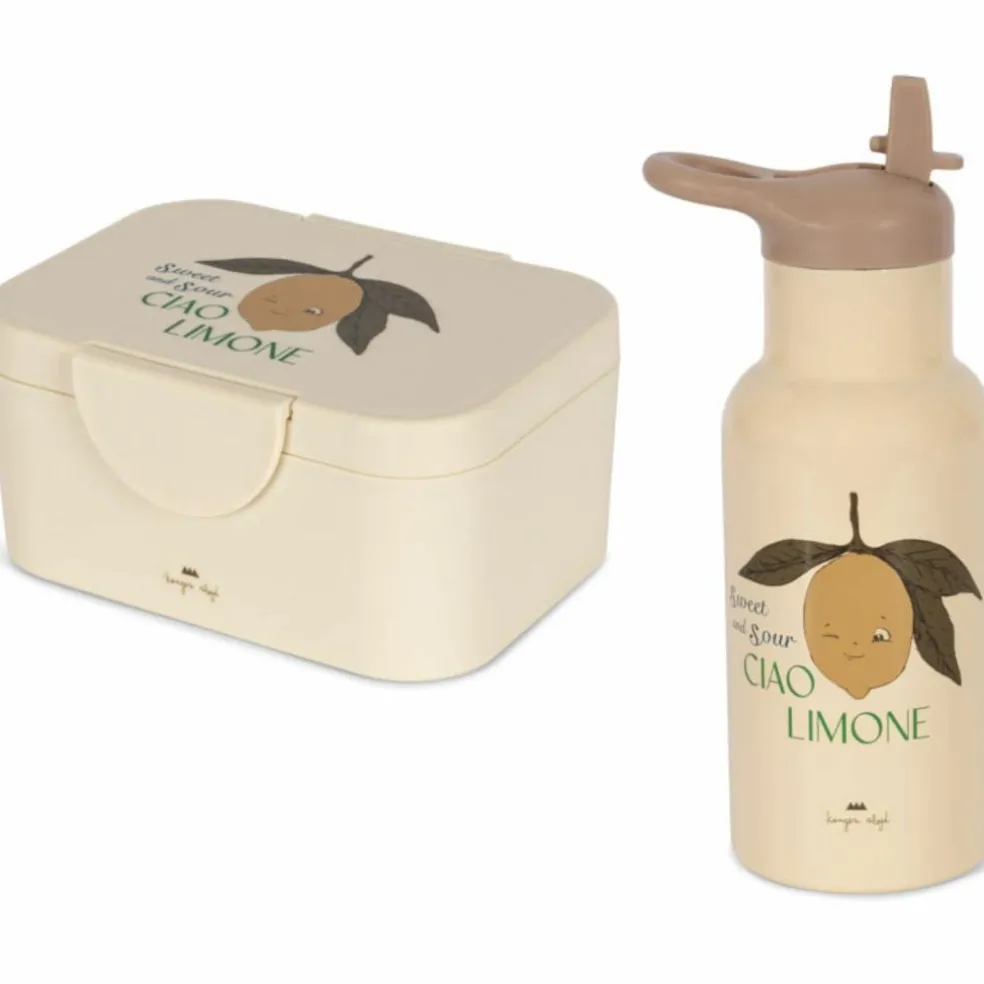 Offrez à votre enfant une pause gourmande pleine de pep’s avec le duo boîte à goûter + gourde « Lemon » de Konges Slojd !