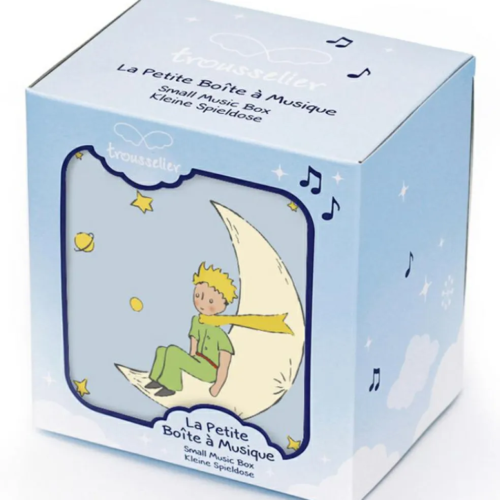 La boîte à musique cube Le Petit Prince bleu clair de la marque Trousselier permet aux enfants de ranger leurs trésors tout en apportant une jolie touche déco à leur chambre.