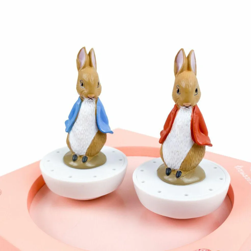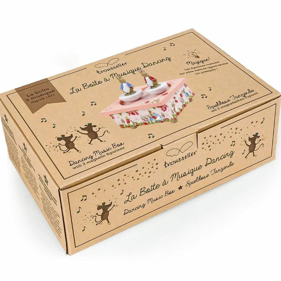 – Tourner la clé située sous la boîte puis poser les figurines pour les faire danser.