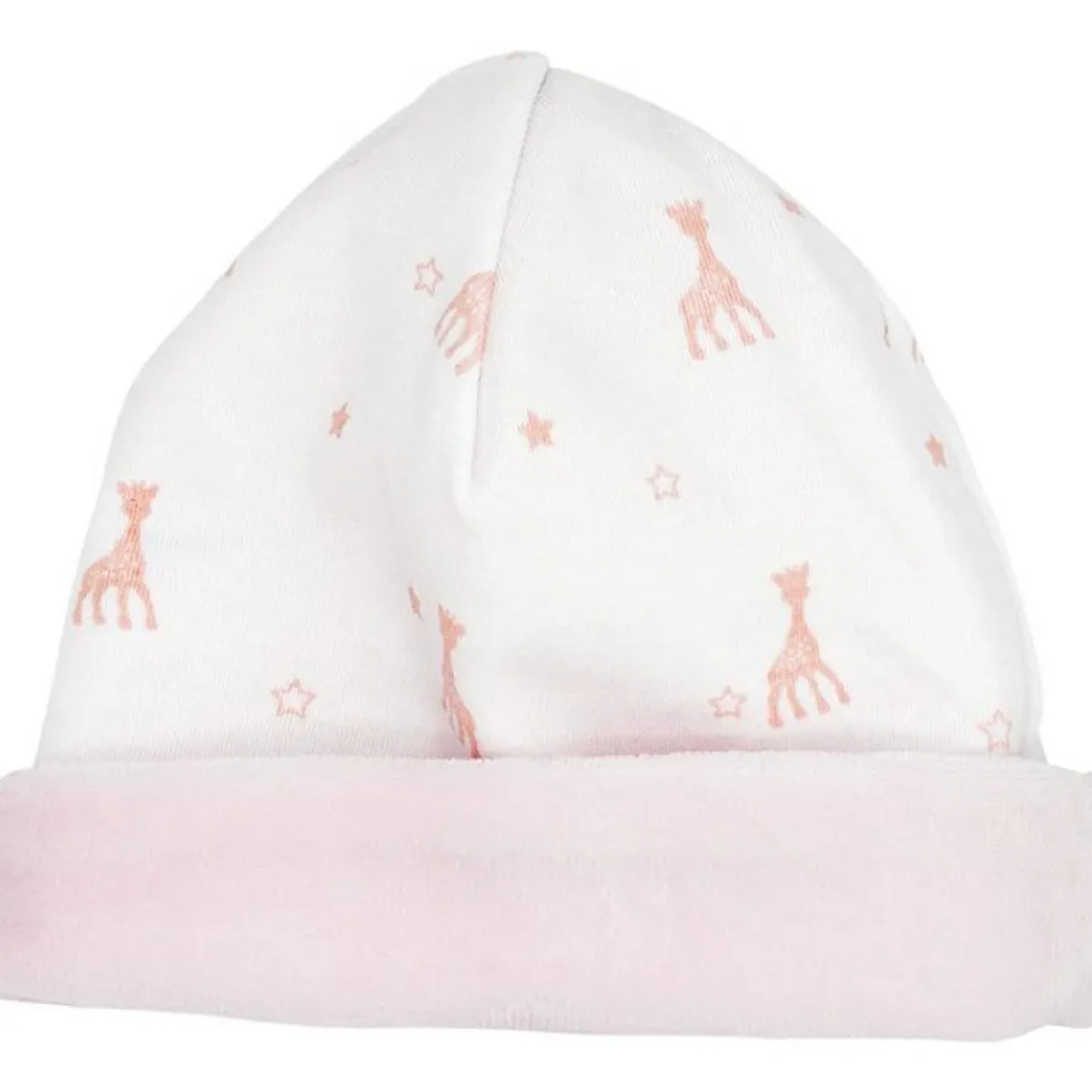 Le bonnet en coton rose Sophie la girafe de la marque Trois Kilos Sept allie élégance et confort pour que bébé se sente à l’aise tout en ayant fière allure !