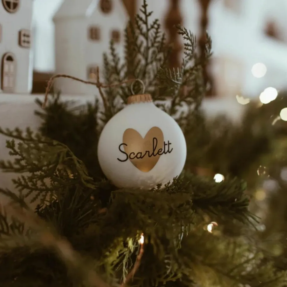 Cette boule en verre blanc laqué se distingue par son délicat cœur doré, sérigraphié avec soin. Offrez bien plus qu’une décoration : ajoutez le prénom, le surnom ou le mot de votre choix pour créer un objet unique, chargé d’émotion et de souvenirs précieux. Une merveilleuse idée cadeau à déposer au pied du sapin ou à suspendre avec fierté chaque année.