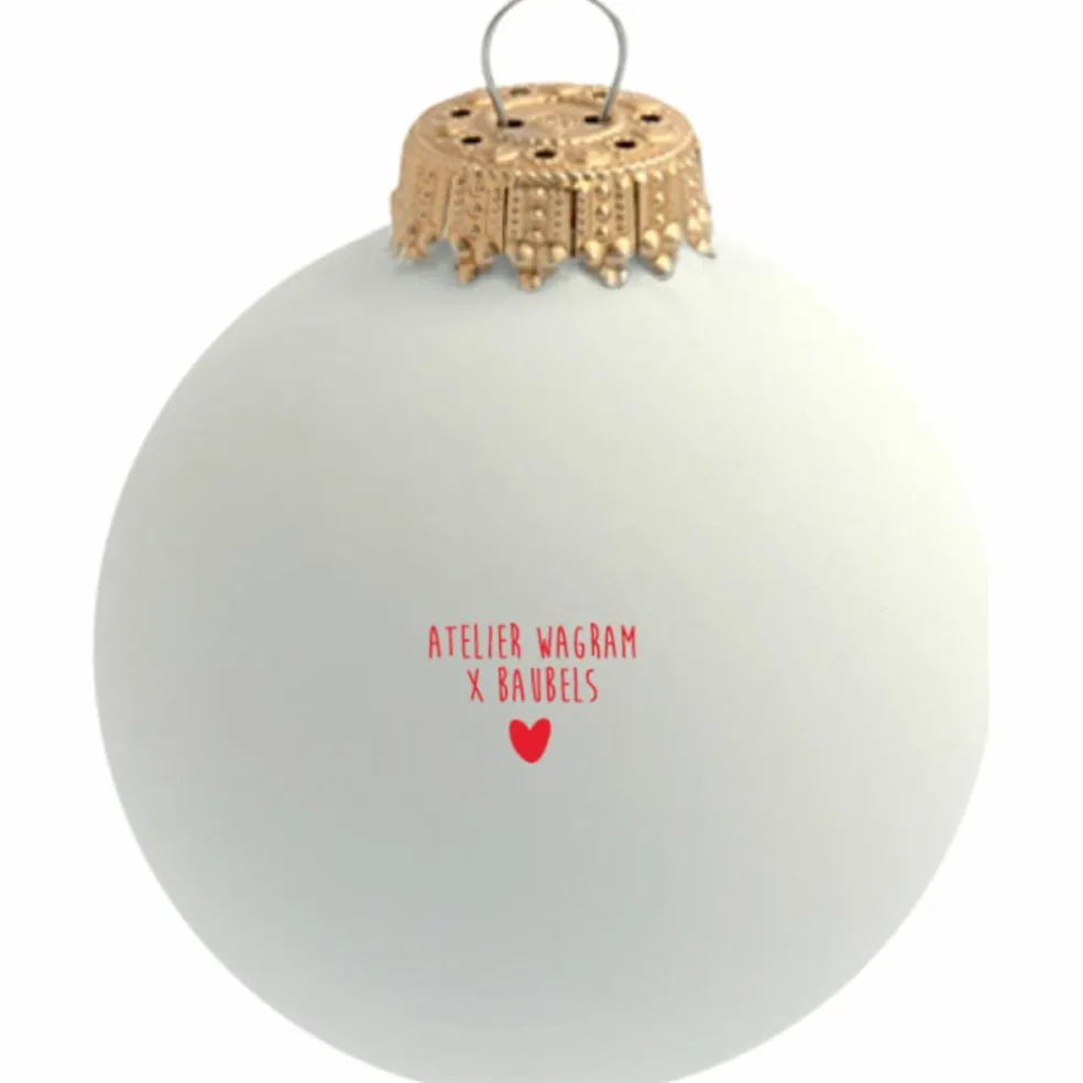 Cette boule en verre au design raffiné est sublimée par l’iconique petit cœur Atelier Wagram, sérigraphié en rouge. Offrez plus qu’une décoration : une véritable attention personnalisée au prénom, surnom ou tendre petit mot de votre choix. Chaque Noël devient ainsi un moment unique, empreint d’amour et de souvenirs partagés.
