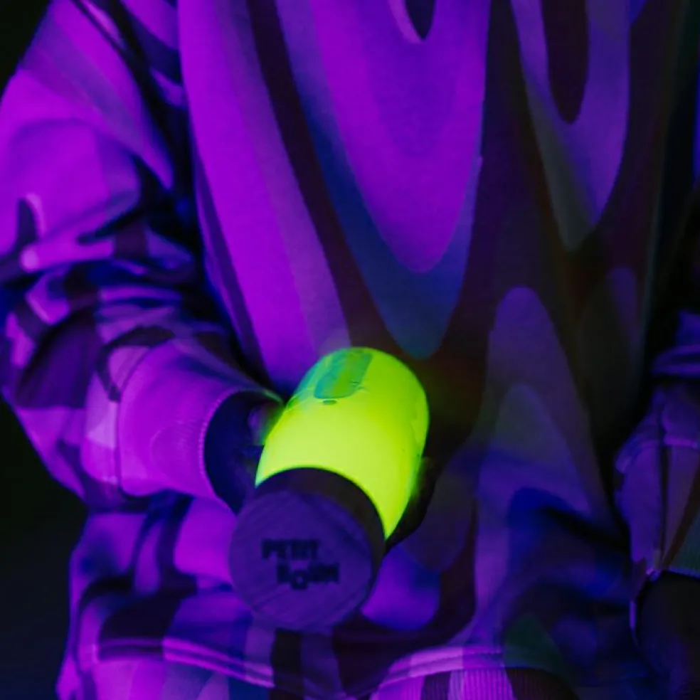 Attention : Contrairement à une lumière autonome ou une phosphorescence classique, la fluorescence nécessite une exposition directe à une lumière UV ou lumière noire pour obtenir le meilleur résultat.