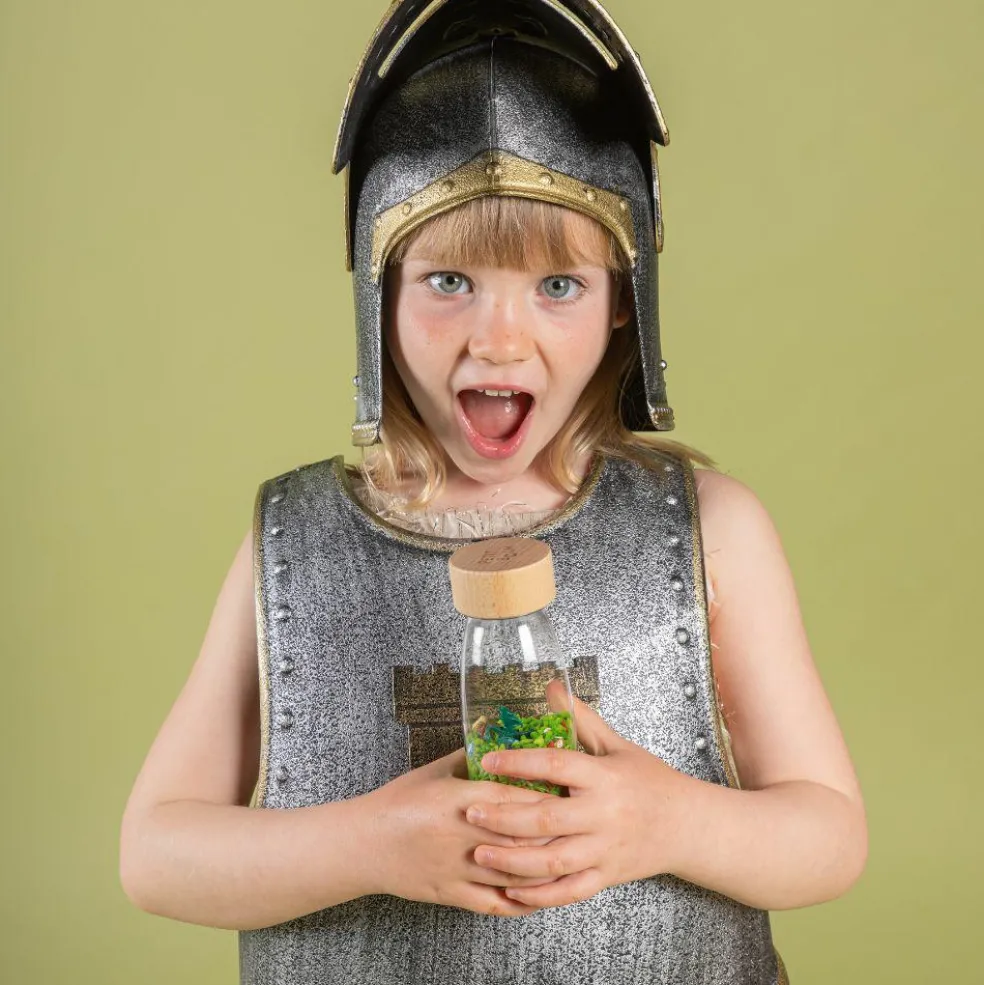 Cette bouteille sensorielle thématique sur les dragons est un véritable trésor d’exploration pour les petits aventuriers.