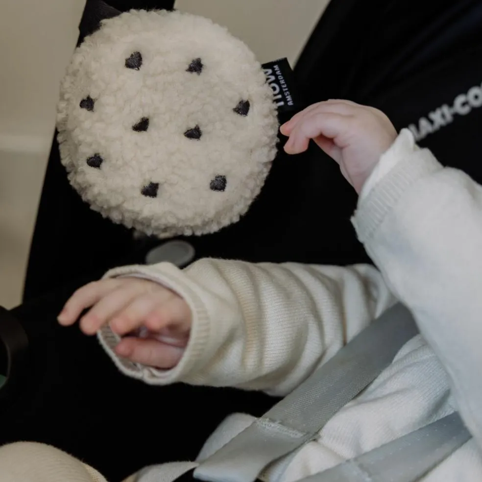 – Accrocher facilement sur une poussette, un cosy ou un lit grâce à son lien en tissu.