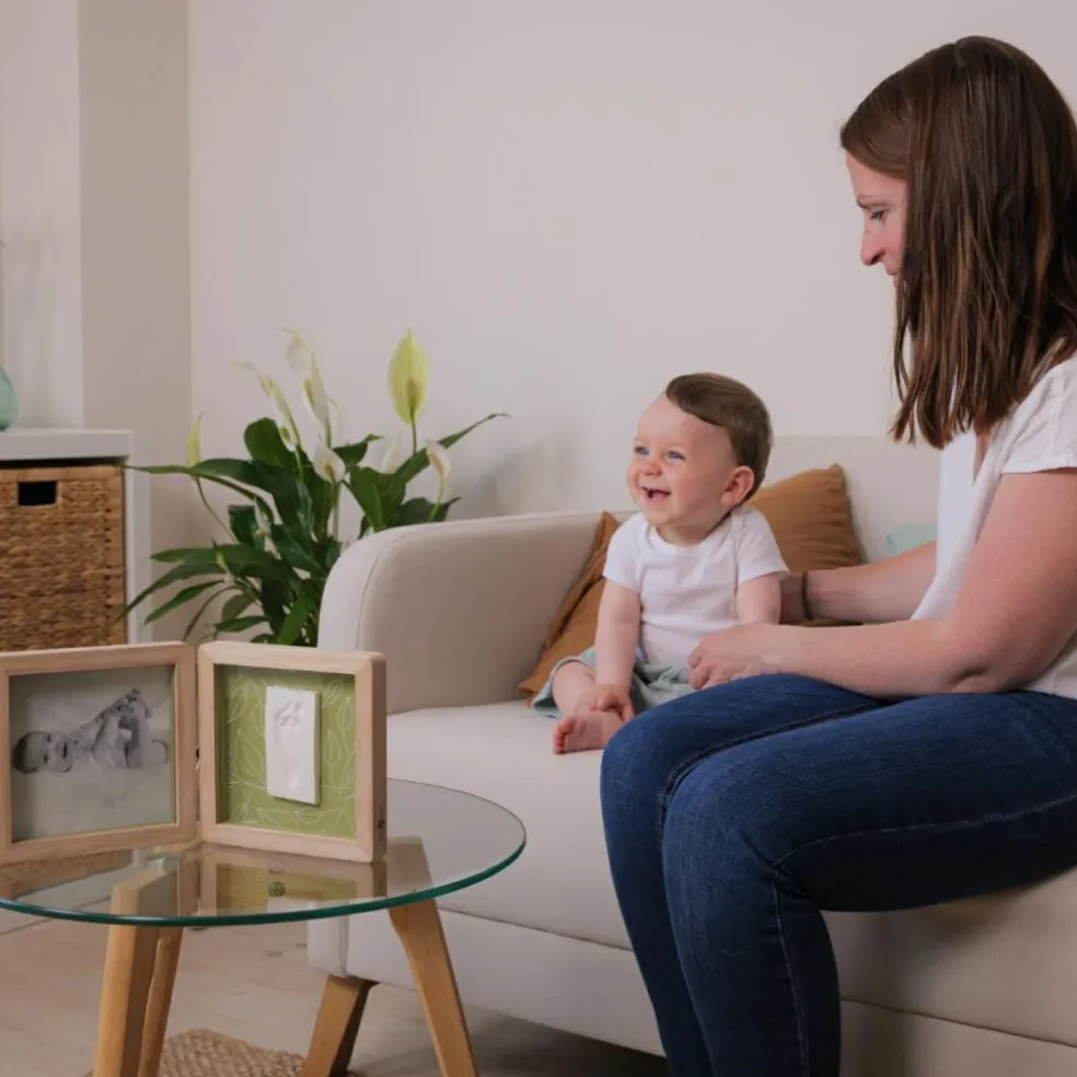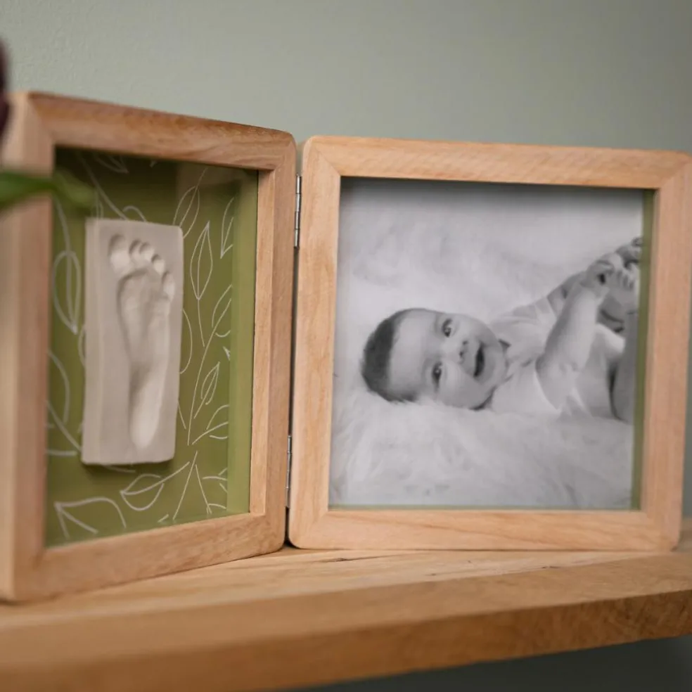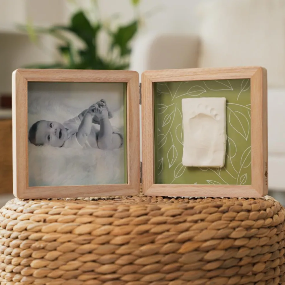 – Le cadre Double – Olive Tree offre une manière unique d’exposer à la fois une photo et l’empreinte de bébé.
