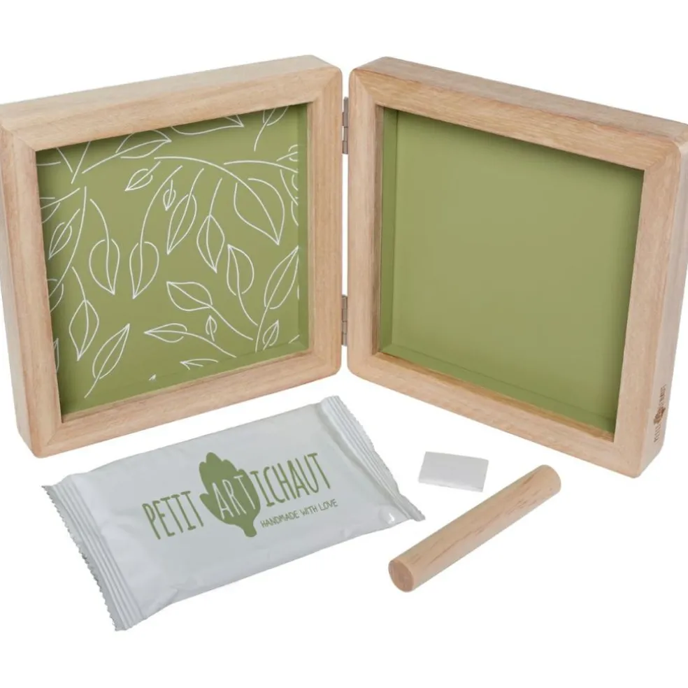 – Le kit comprend de la pâte hypoallergénique, un rouleau et un descriptif pour créer facilement l’empreinte.