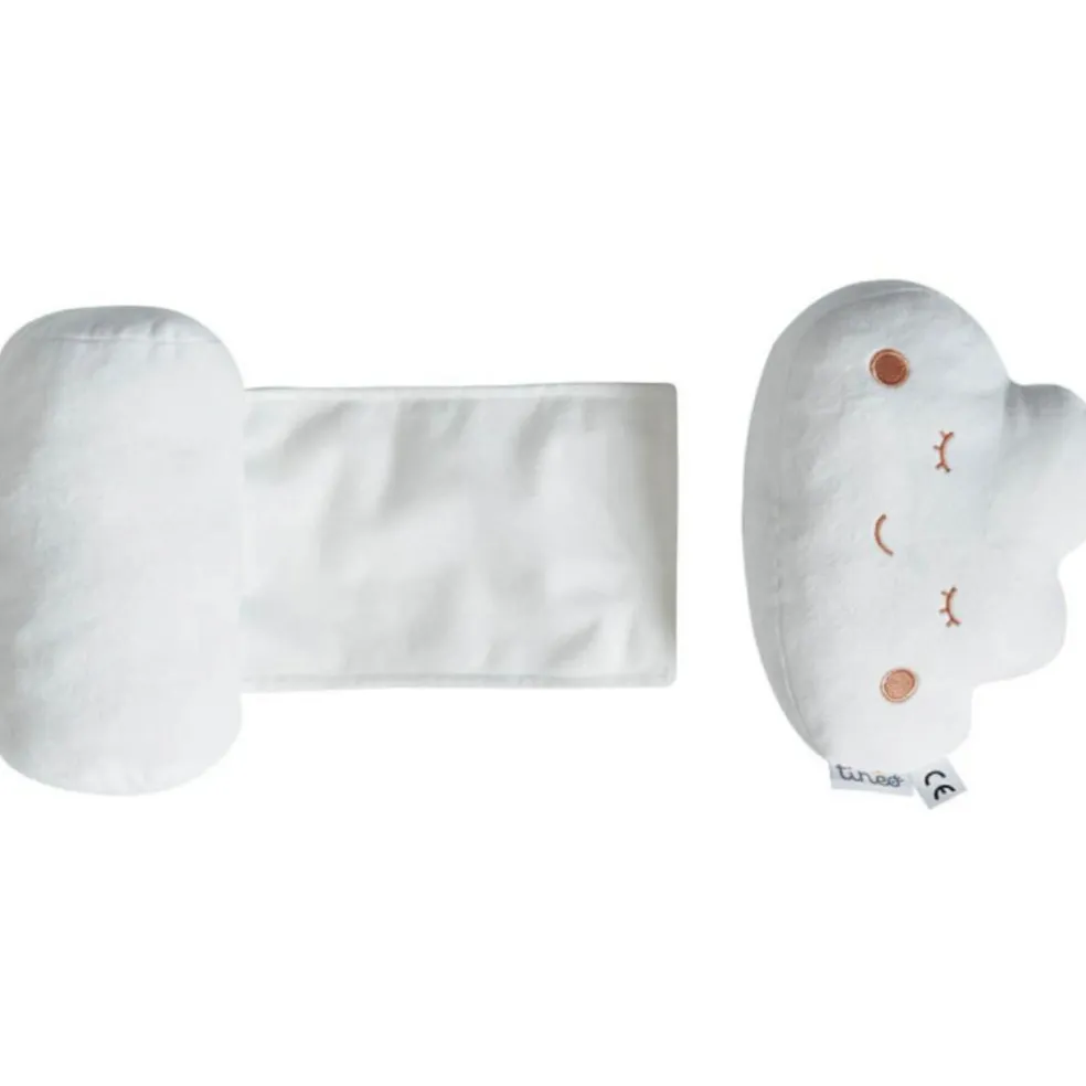 Le cale-bébé Cloudy de Tinéo est un accessoire de sommeil 2 en 1, il permet à la fois de positionner bébé sur le dos pendant son sommeil et d’offrir une adorable peluche à bébé.