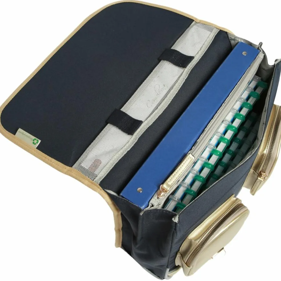 – 2 compartiments pour les cahiers formats 21×29,7 et 24×32 cm.