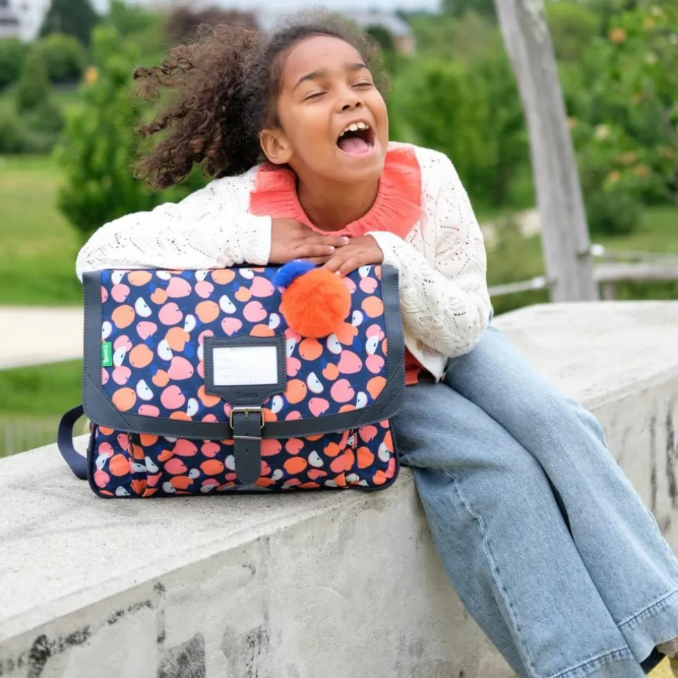Le cartable Sofia, avec son motif pommes aux couleurs pop et modernes, va vous donner la pêche! En plus de son décor fruités, le modèle Sofia se pare d’un porte-clé pompon aussi doux qu’audacieux pour une rentrée survitaminée !