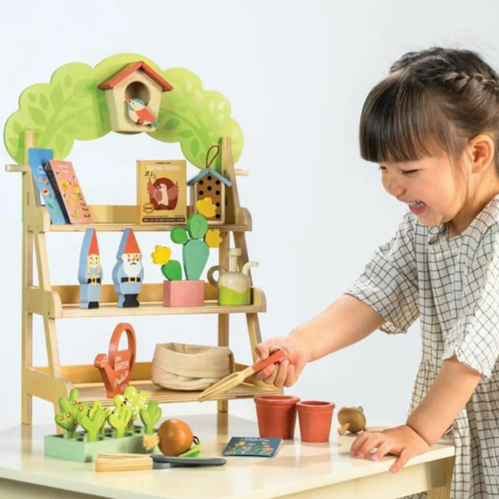 Initiez votre enfant au plaisir du jardinage avec le Centre de jardinage en bois Jour du Marché de Tender Leaf, un univers miniature aussi réaliste qu’amusant.
