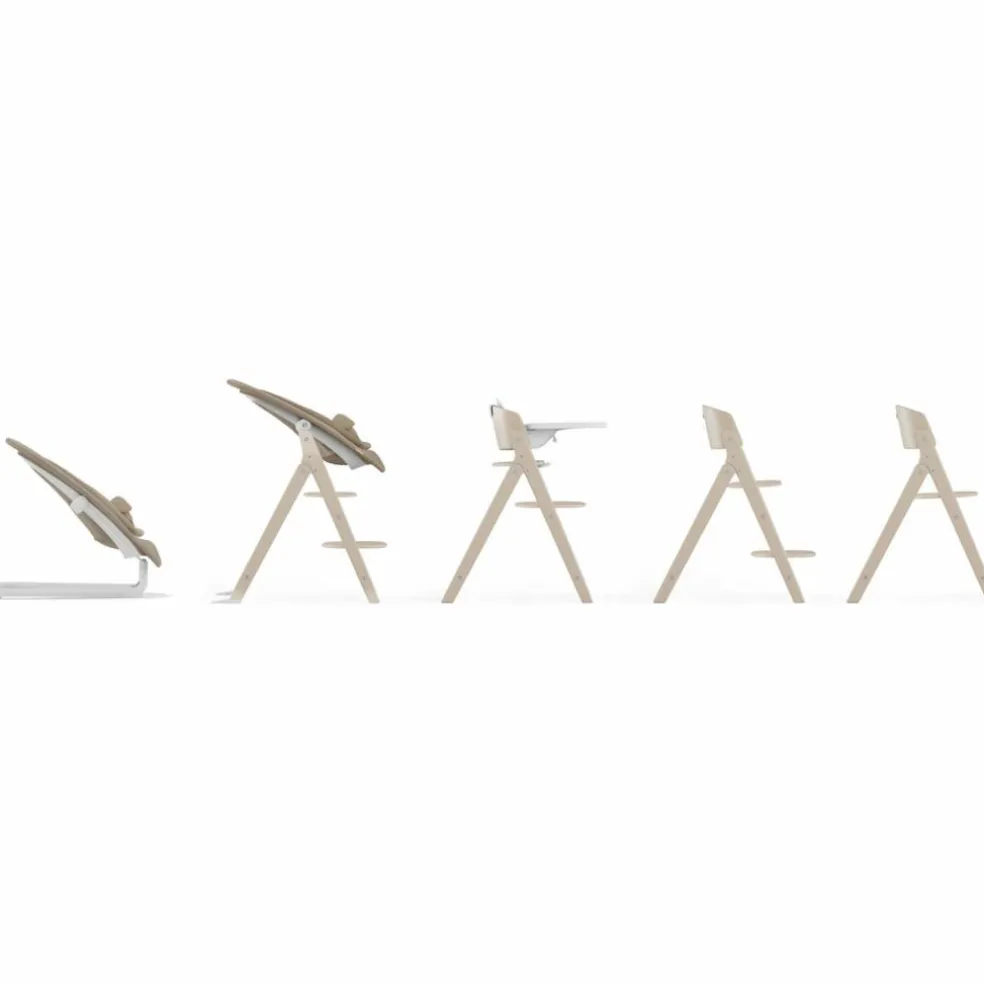 Dès la naissance, le transat ergonomique permet à bébé de participer à la vie de famille en toute sécurité. À partir de 6 mois, le baby set avec plateau repas amovible facilite les premiers repas. Puis, en grandissant, il suffit de retirer les accessoires pour obtenir une chaise adaptée aux enfants, adolescents et même adultes (jusqu’à 120 kg).