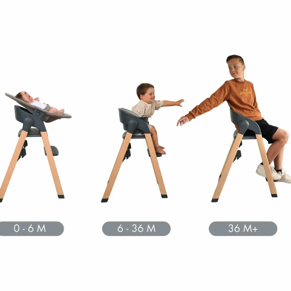 Avec la chaise haute en bois Grow With Me, votre petit est toujours confortablement assis à hauteur des yeux à table. À mesureque votre enfant grandit, vous pouvez facilement ajuster la chaise en retirant le siège pour bébé. Grâce au repose-pieds réglable, la chaise évolue avec lui, du bébé à l’adulte. Votre enfant a toujours une position assise confortable et ergonomique.