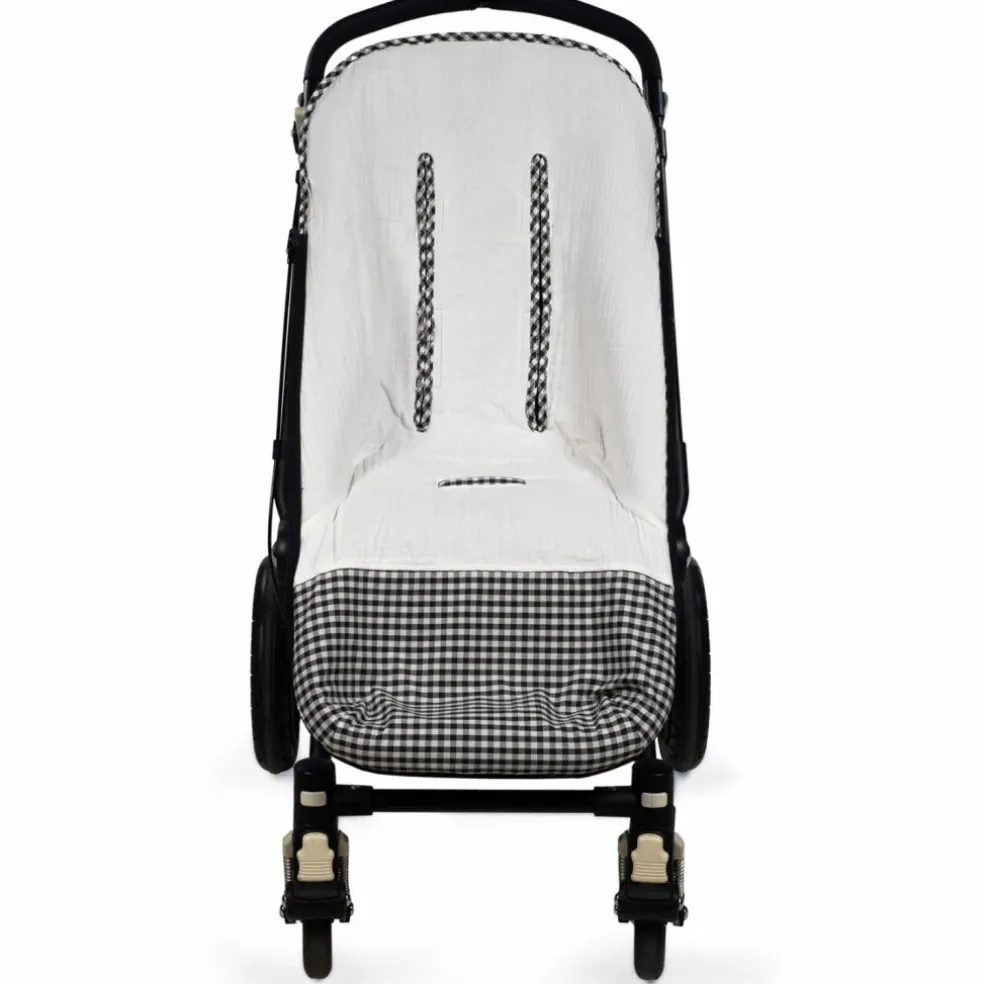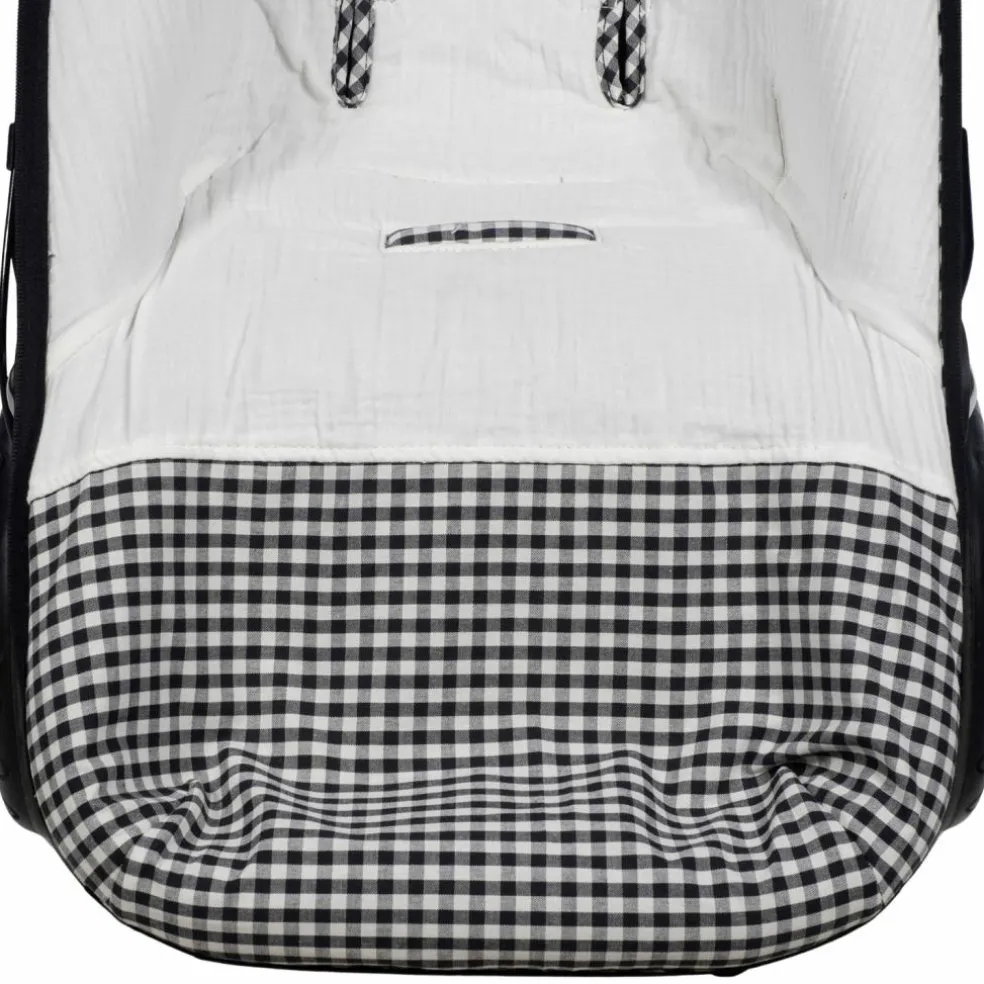 – Chancelière I love vichy noir idéale pour couvrir la poussette.