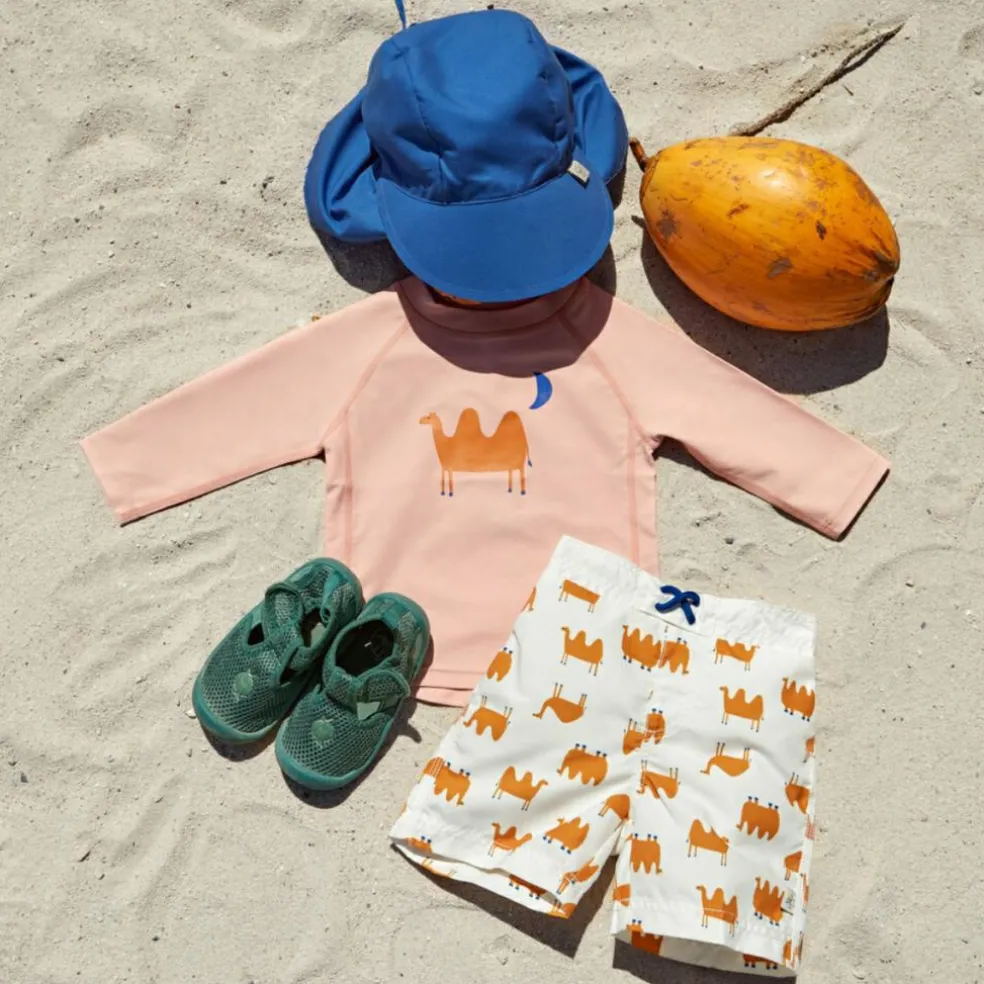 – La casquette avec sa longue protection pour la nuque protège du soleil la tête les yeux les oreilles et la nuque des petits.