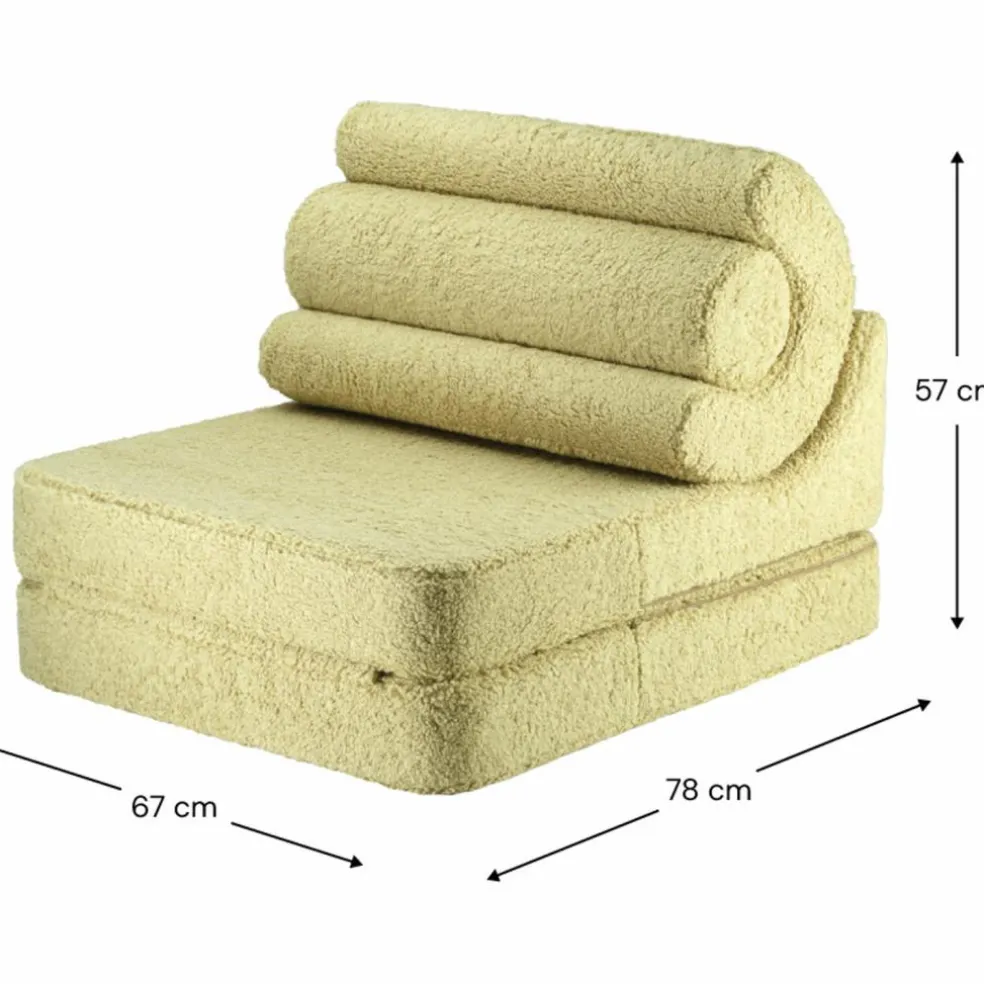 Pensée comme un véritable compagnon du quotidien, cette chauffeuse modulable séduit par sa texture molletonnée façon « teddy », ultra réconfortante, et son coloris matcha tout en douceur. À la fois fauteuil, lit d’appoint et terrain de jeu, elle suit les envies de votre enfant à tout moment de la journée.