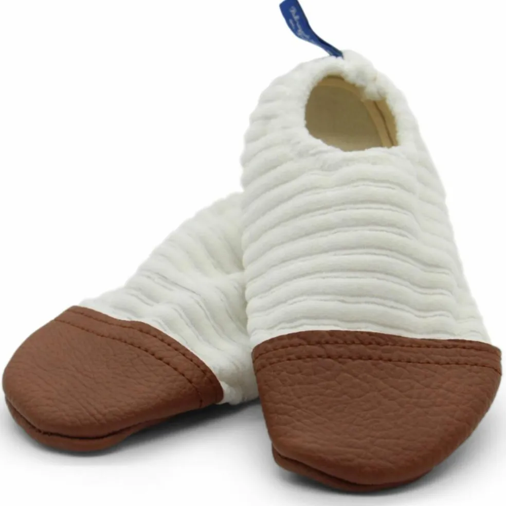 Offrez à bébé la sensation magique de marcher pieds nus tout en gardant ses petits pieds bien au chaud avec les Chaussons Les Petits Velours Ivoire !