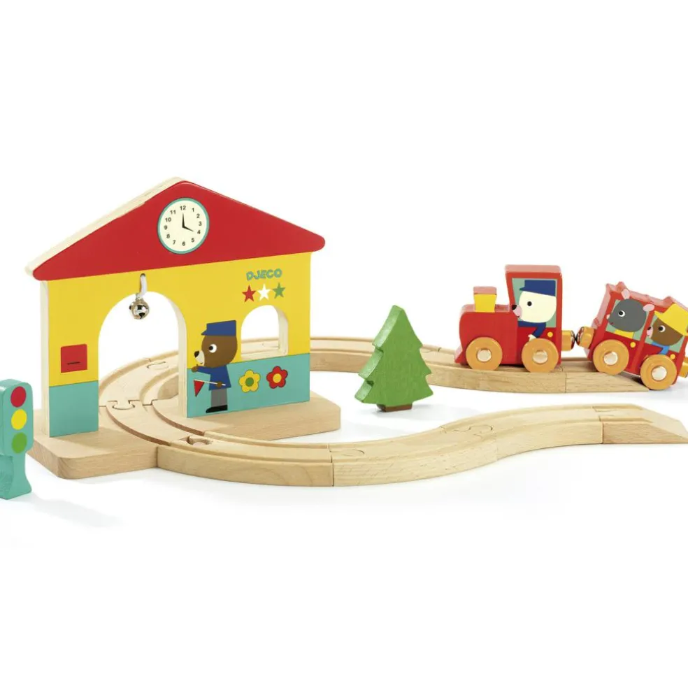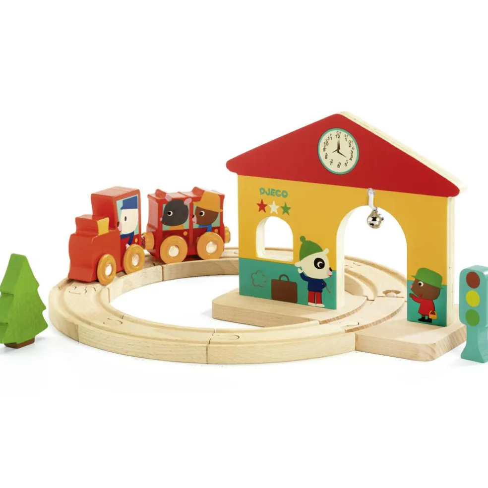 Le circuit train Minitrain de la marque Djeco développe la préhension fine des tout-petits et leur créativité. En effet, ils peuvent configurer le circuit de plusieurs manières et ensuite inventer une histoire au chauffeur du petit train et à ses amis !