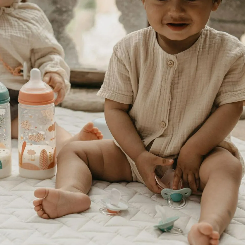 – Comprend un biberon anti-colique de 270 ml + une sucette 0-6 mois avec tétine SX Pro + attache-sucette réversible avec clip et ruban.