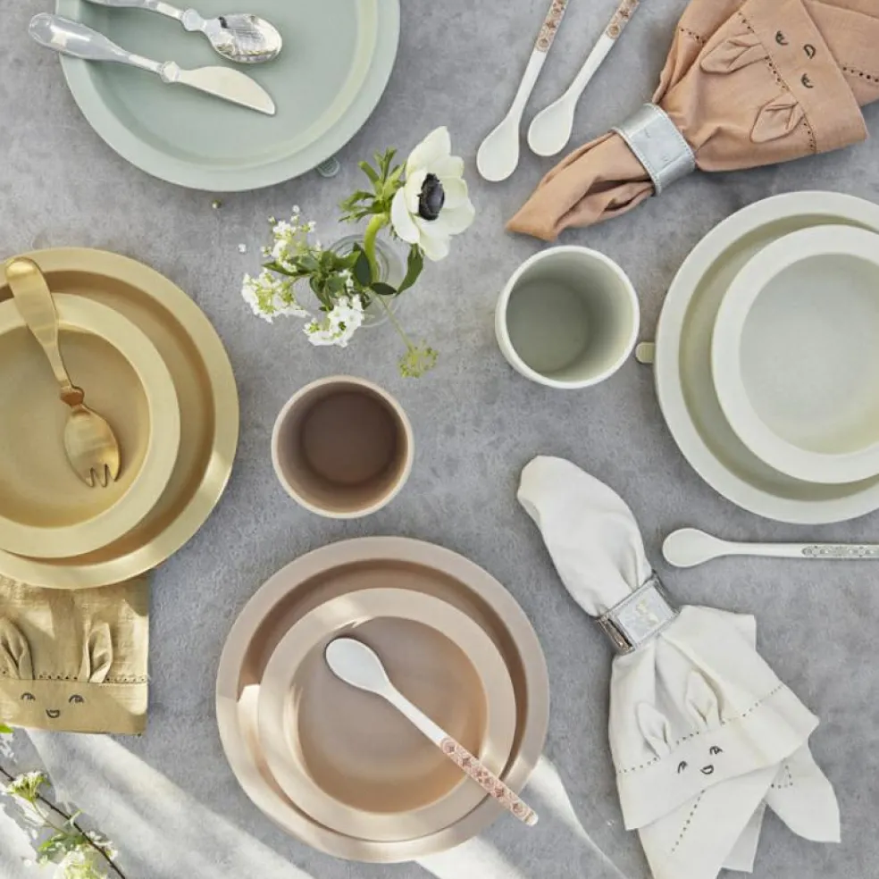 Le coffret couverts Matt gold en inox de la marque Elodie est un cadeau de naissance idéal. Il deviendra l’allié parfait des petites mains de vos enfants et sera en harmonie avec votre décoration de table.