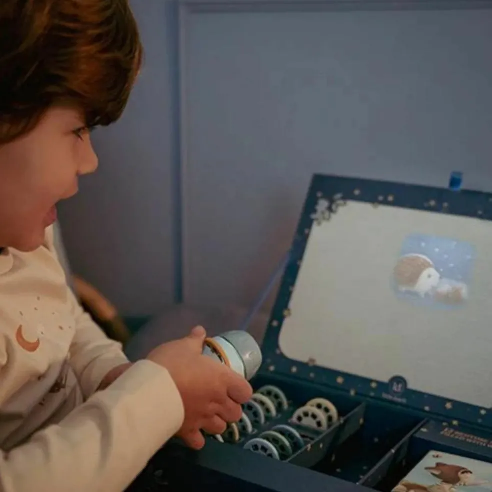 Pensé pour éveiller l’imaginaire des tout-petits, ce coffret au design féérique rassemble tout le nécessaire pour créer une ambiance douce et réconfortante avant de dormir. Grâce à sa lampe rétro au look naturel et ses disques illustrés, chaque soirée devient le théâtre d’une aventure merveilleuse peuplée de tendres animaux de la forêt.