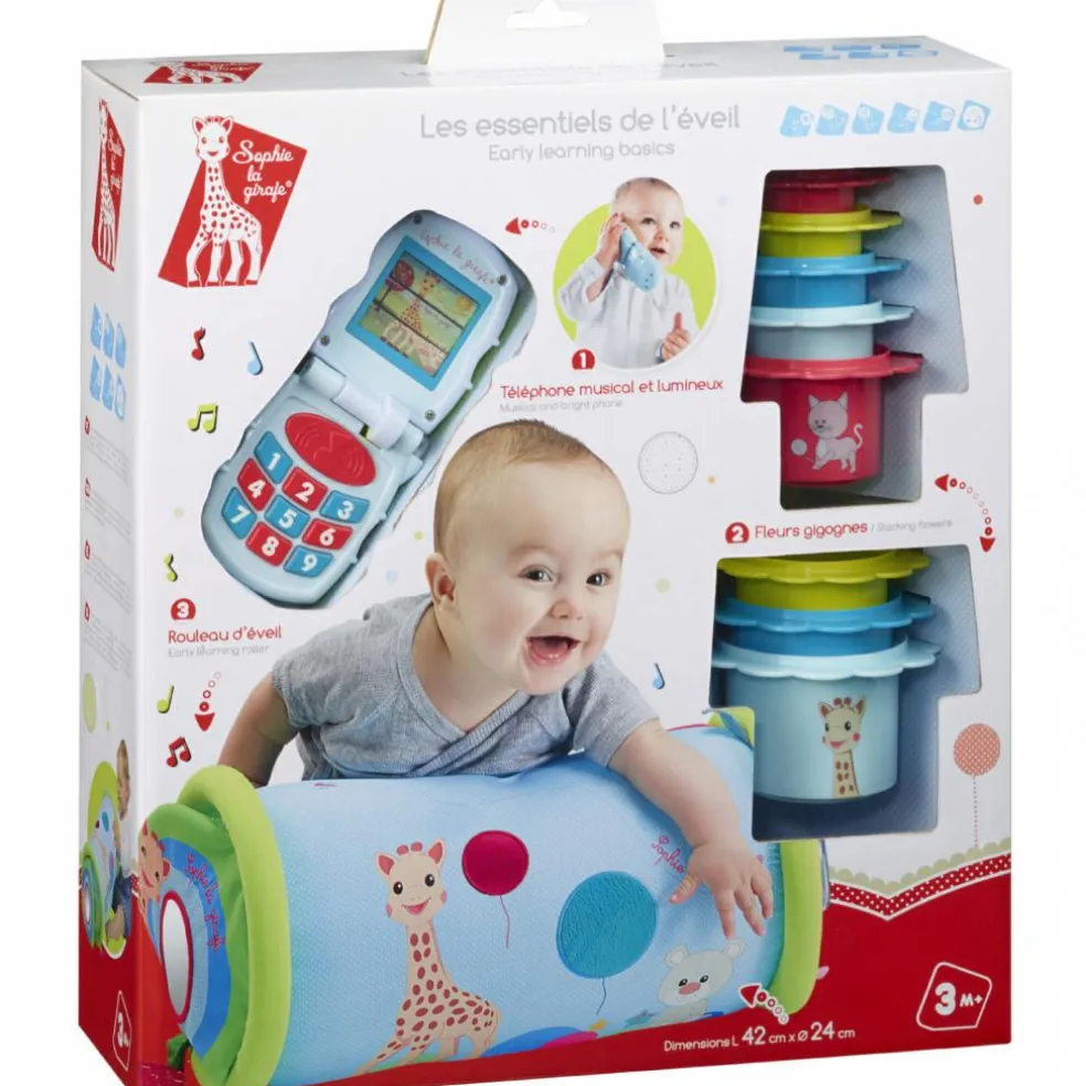 Le coffret Les essentiels de l’éveil de la marque Sophie la Girafe permettra à l’enfant de développer sa motricité tout en s’amusant : faire rouler, mordiller, pincer, tenir, escalader, chevaucher, toucher, écouter, se redresser et encore plein d’autres activités l’attendent dans ce coffret spécial éveil. Des heures de jeu garanties !