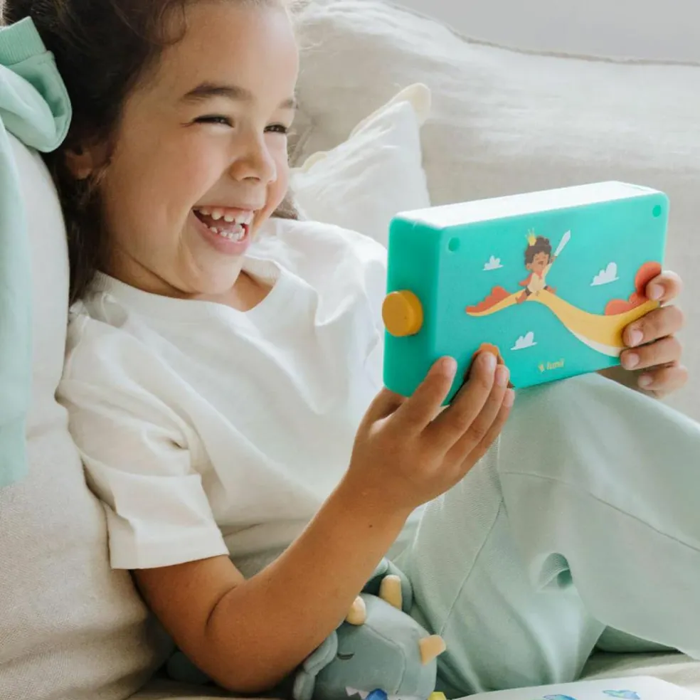 – Un jouet sans écran et sans ondes pendant l’écoute, pour un usage apaisant et sécurisé.